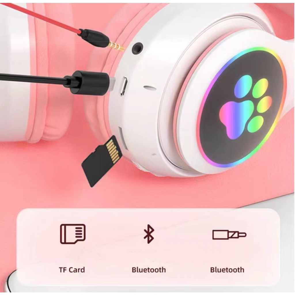 Headphone Orelha De Gato Gatinho Cat Bluetooth Ear Com Led 5.0 Stereo Micro Sd P2 Alta Potência Colorido