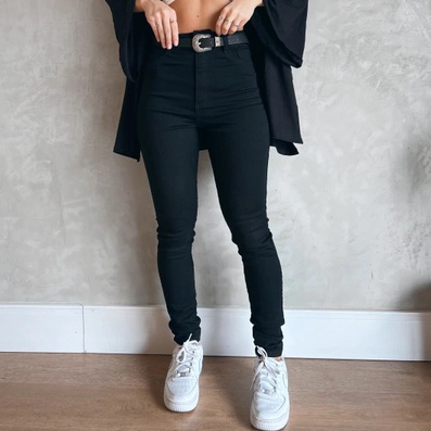 Calça Jeans Preta Skinny Feminina Cós Alto Levanta Bumbum Com Lycra