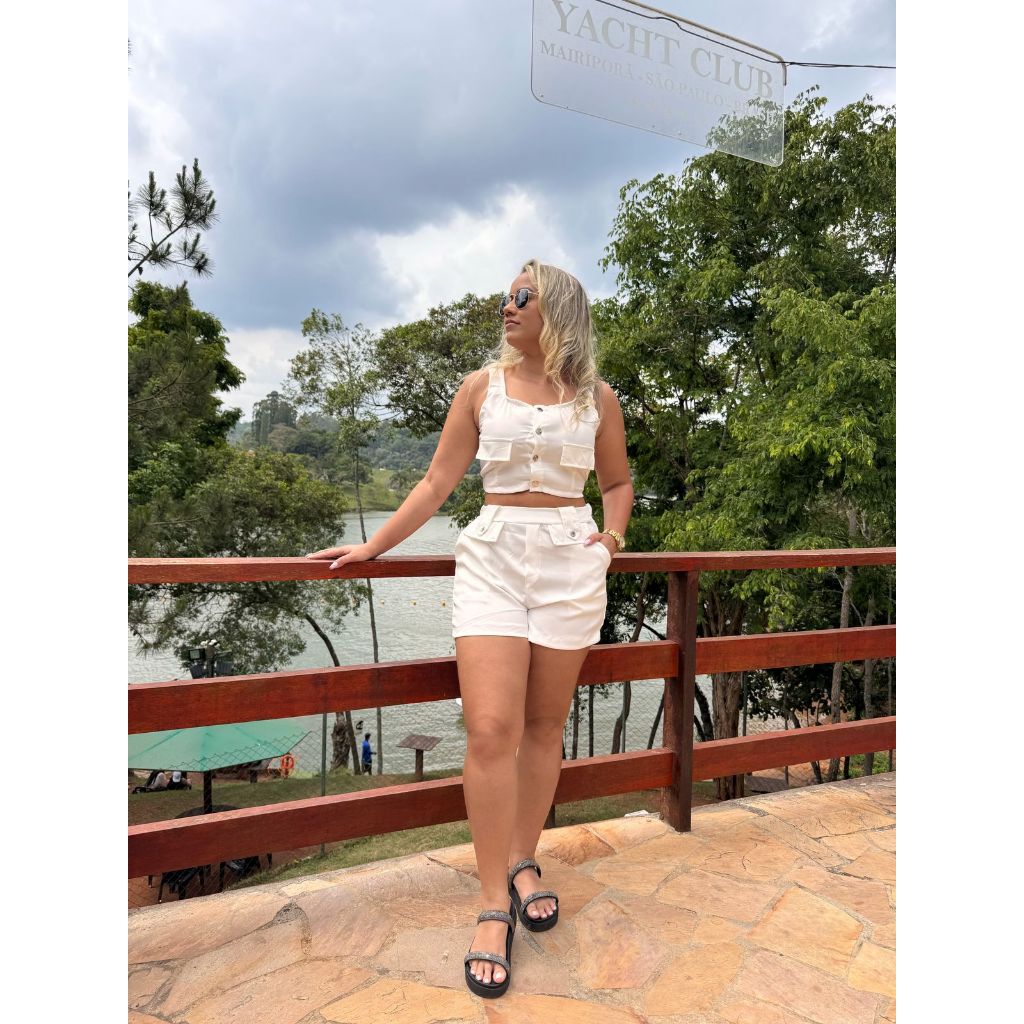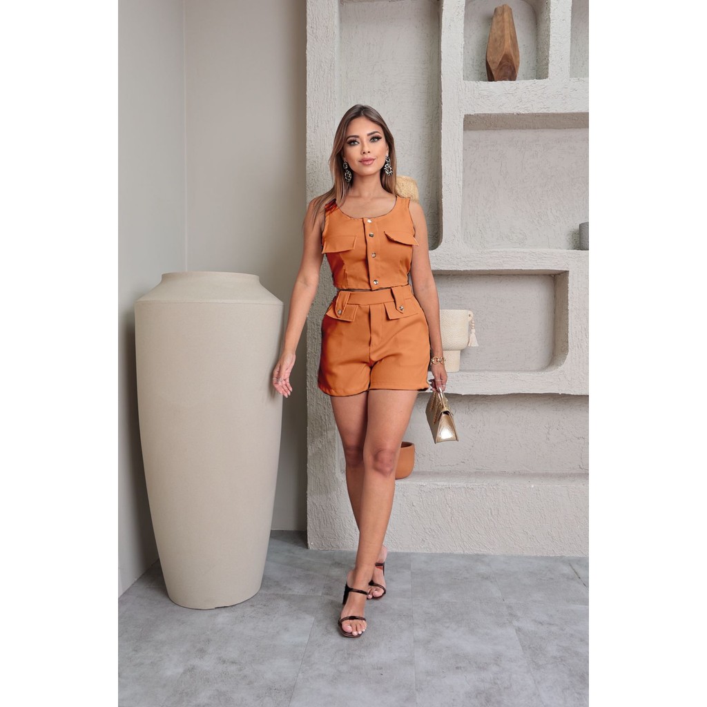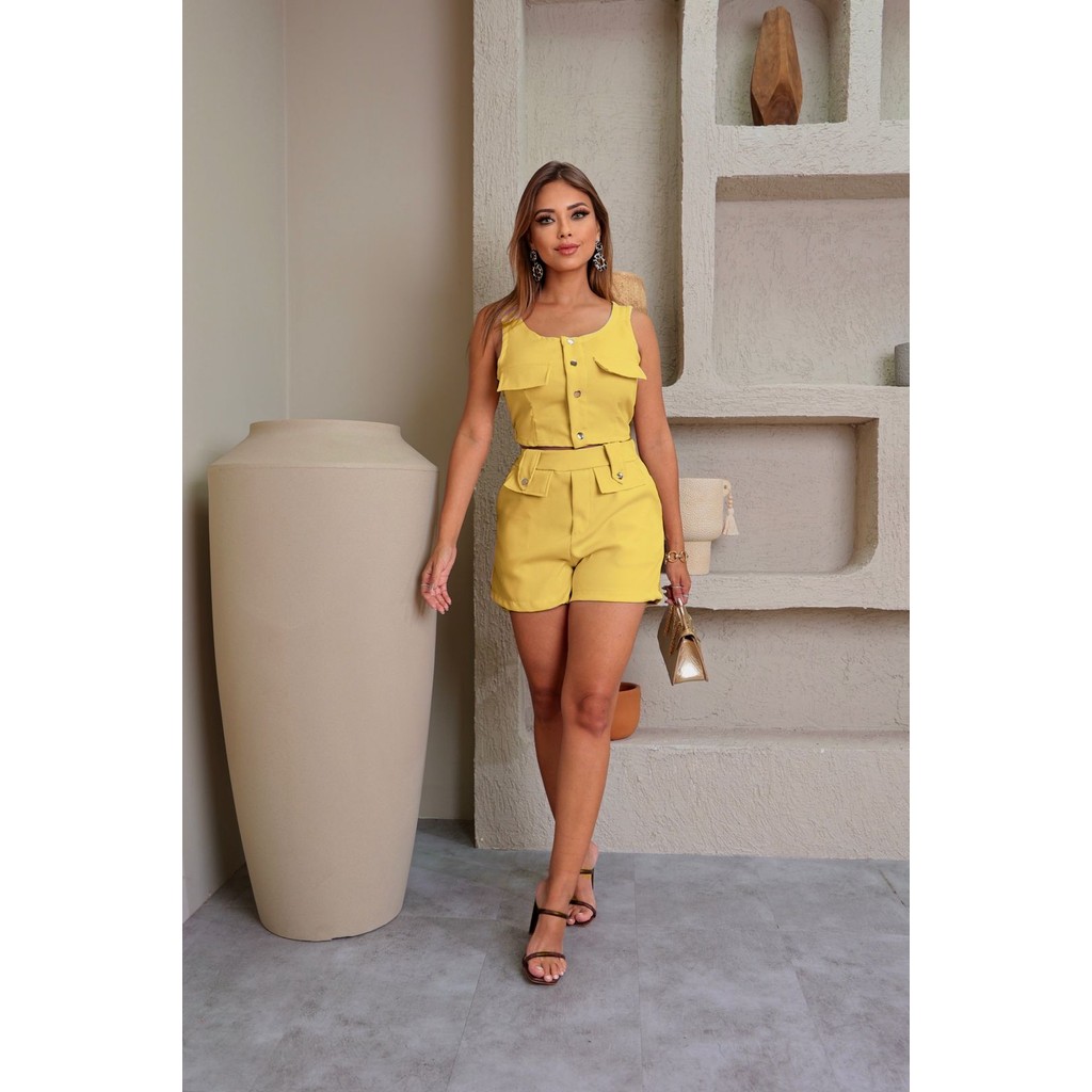 Conjunto Alfaiataria Feminino Cropped e Short Moda Feminina