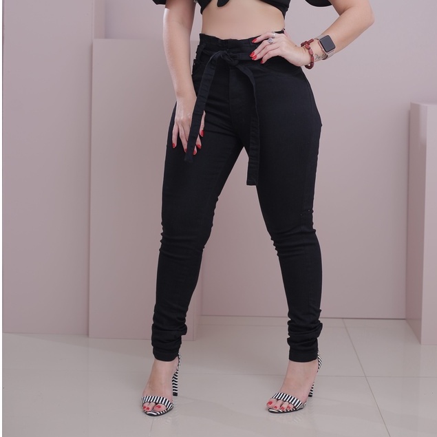 Calça Jeans Feminina Cintura Alta com Lycra Levanta Bumbum Skinny Jeans Preto