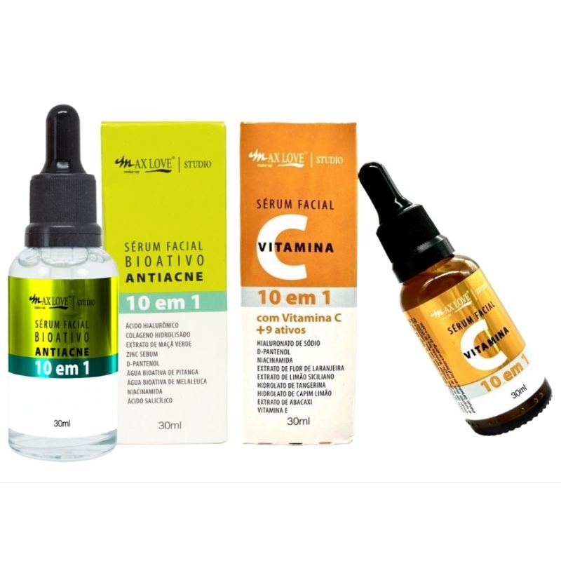 Kit Sérum Max Love Vitamina C 10 em 1 30ml + Sérum Bioativo Antiacne 10 em 1 30ml
