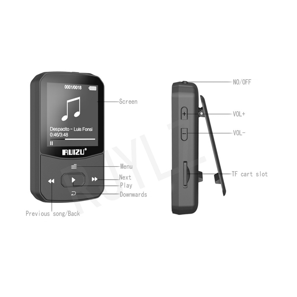 Mini Mp3 Player 8gb Com Presilha Ruizu X52 Original Ruizu Com Suporte De Tela Para Fm,Ecordo,E-Book / Portátil