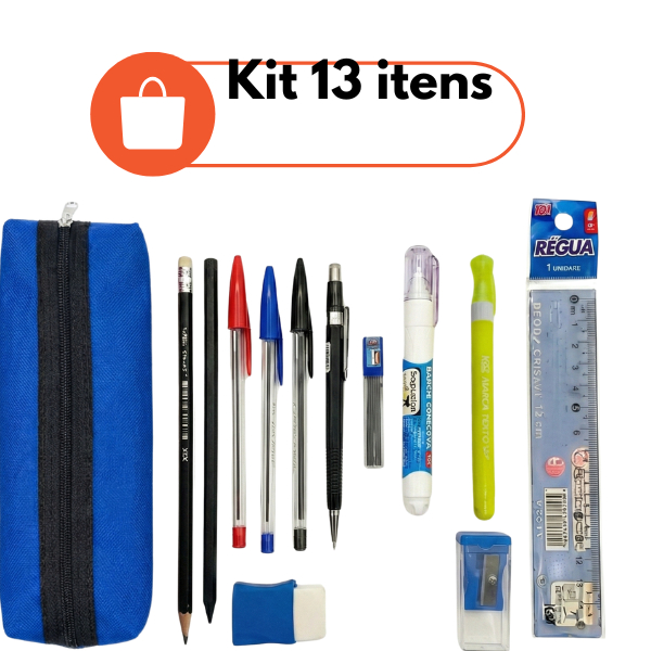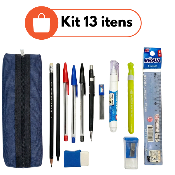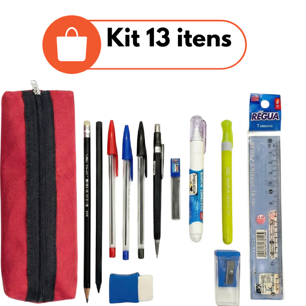 Kit Escolar Pop Completo 13 Itens – Estojo com Materiais Essenciais para Escola e Escritório Lapiseira Corretivo Caneta