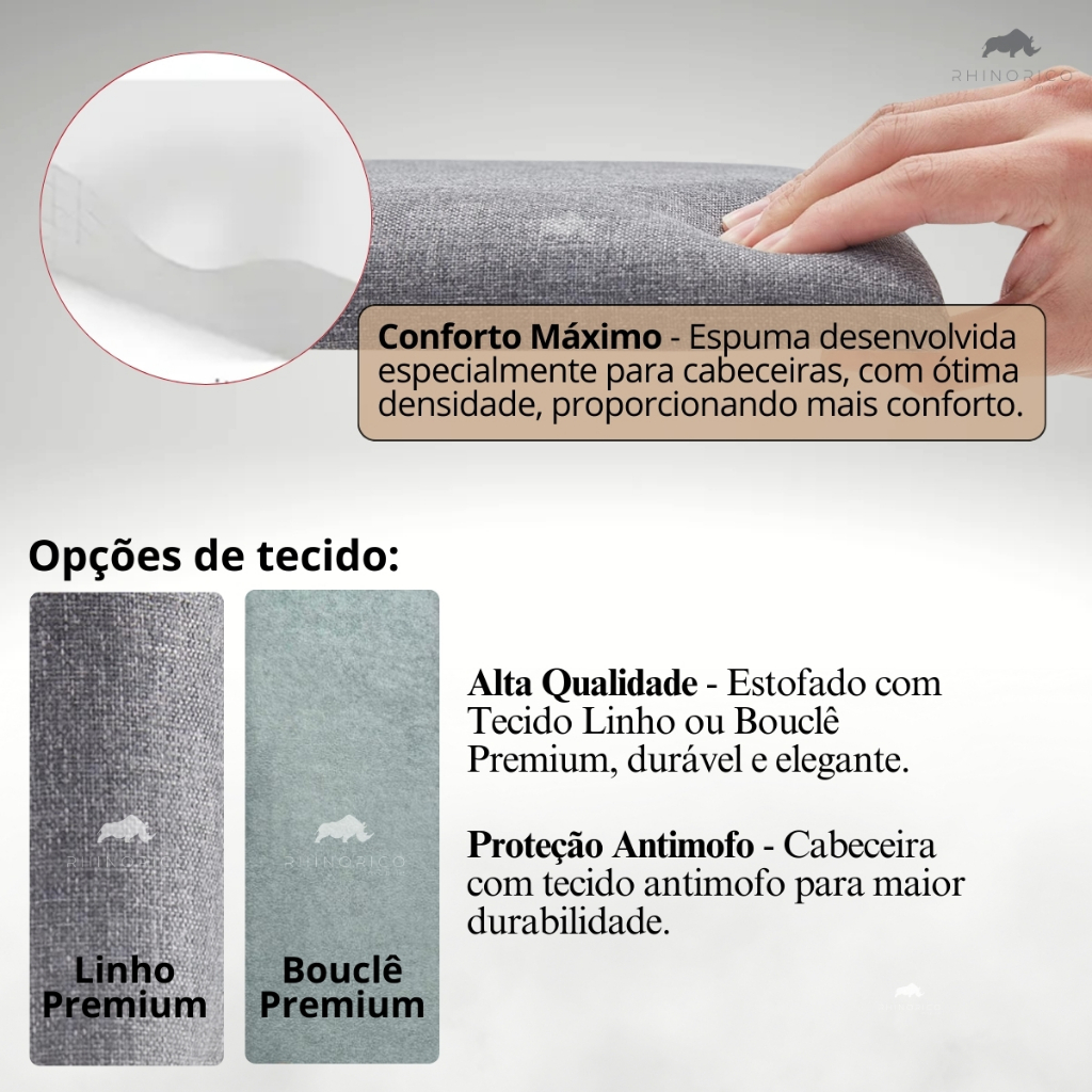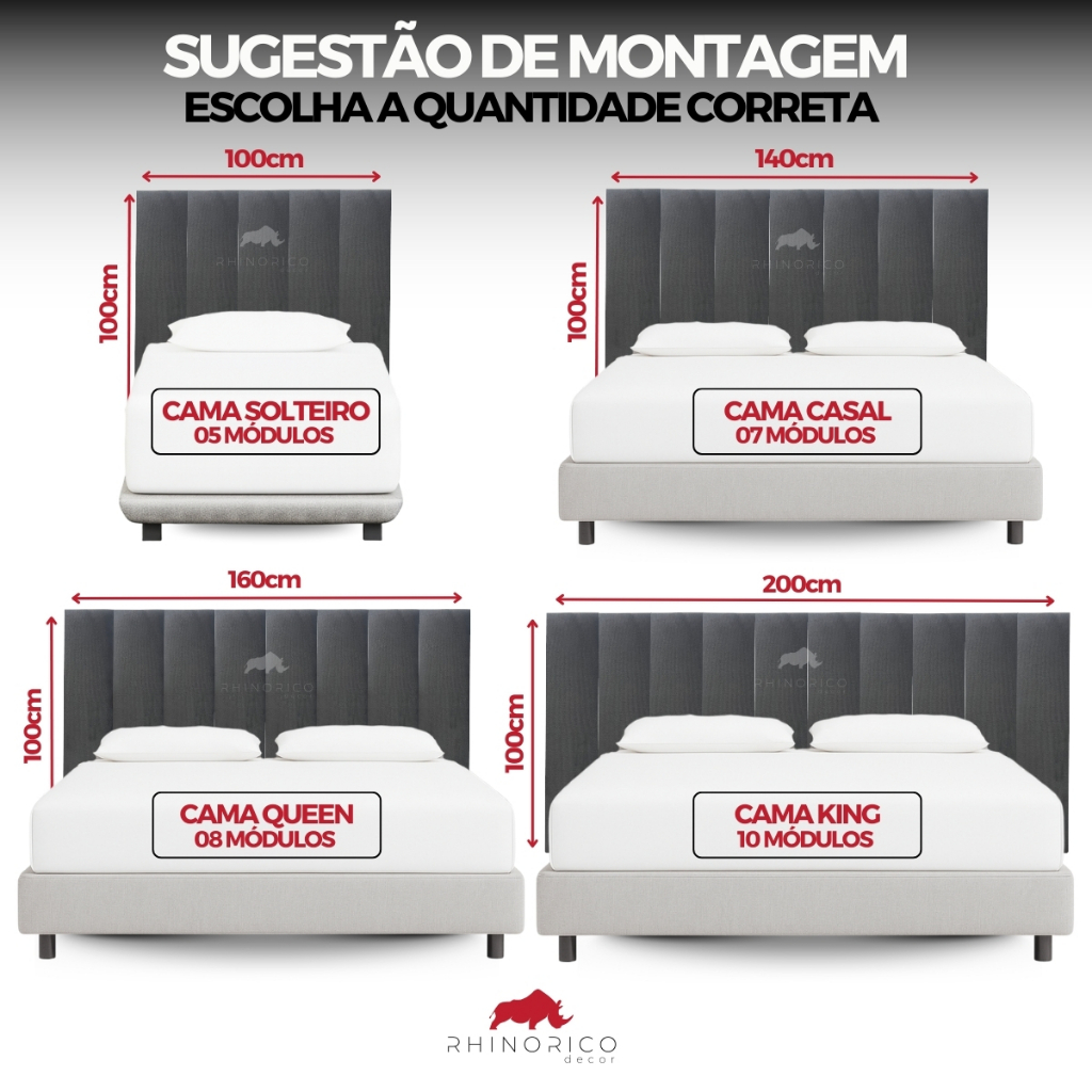 Cabeceira de Cama Modulada e Estofada Adesiva Cama Box Linho Bouclê Módulos 100x20cm