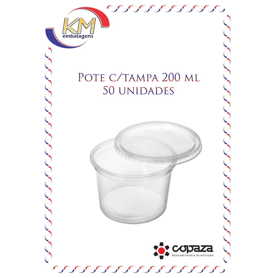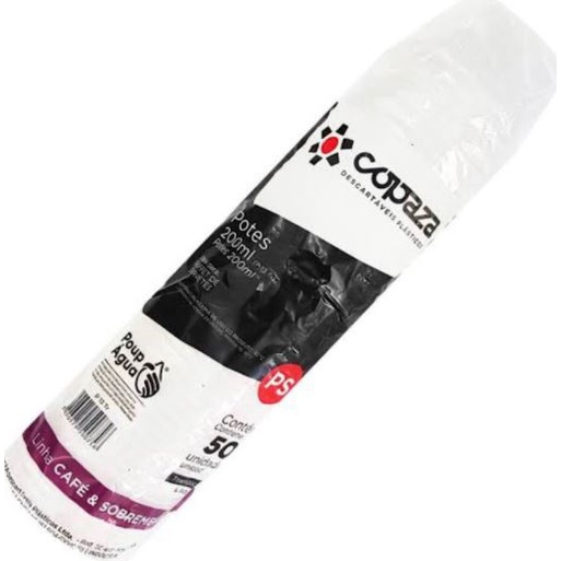 Pote c/tampa 200 ml c/50 unid. - Copaza - café, sobremesa, potes