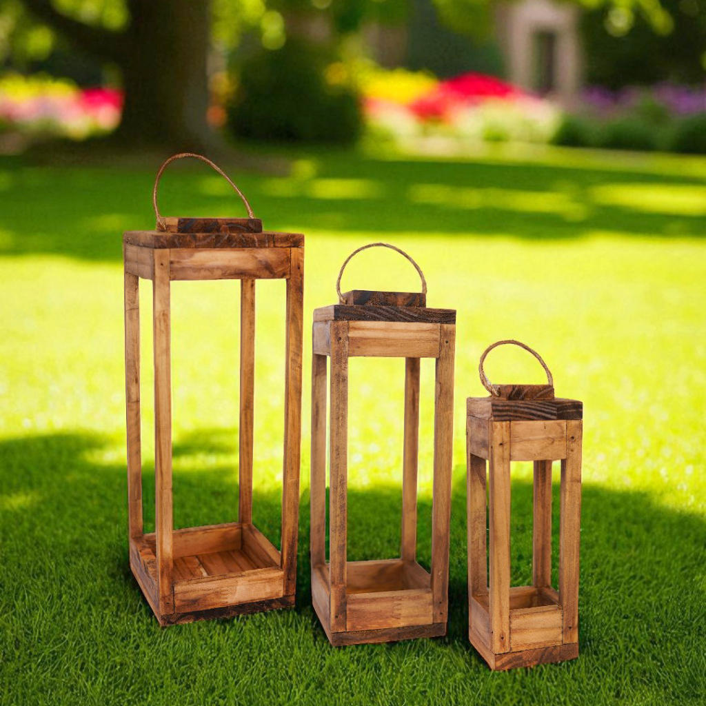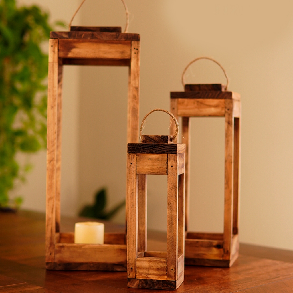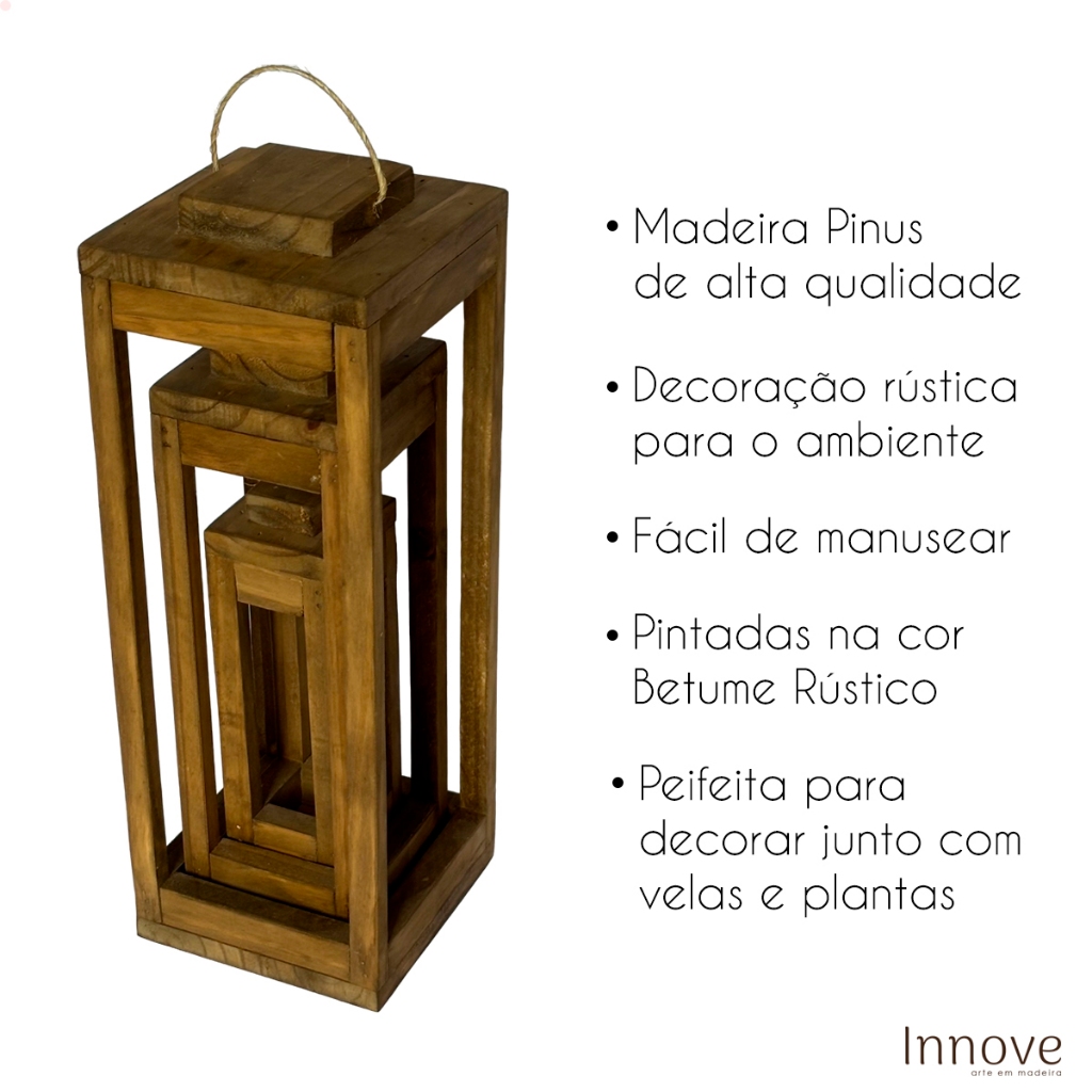 Kit Trio Conjunto Lanterna Luminária Marroquina Madeira Para Decoração de Festas Casamento Velas
