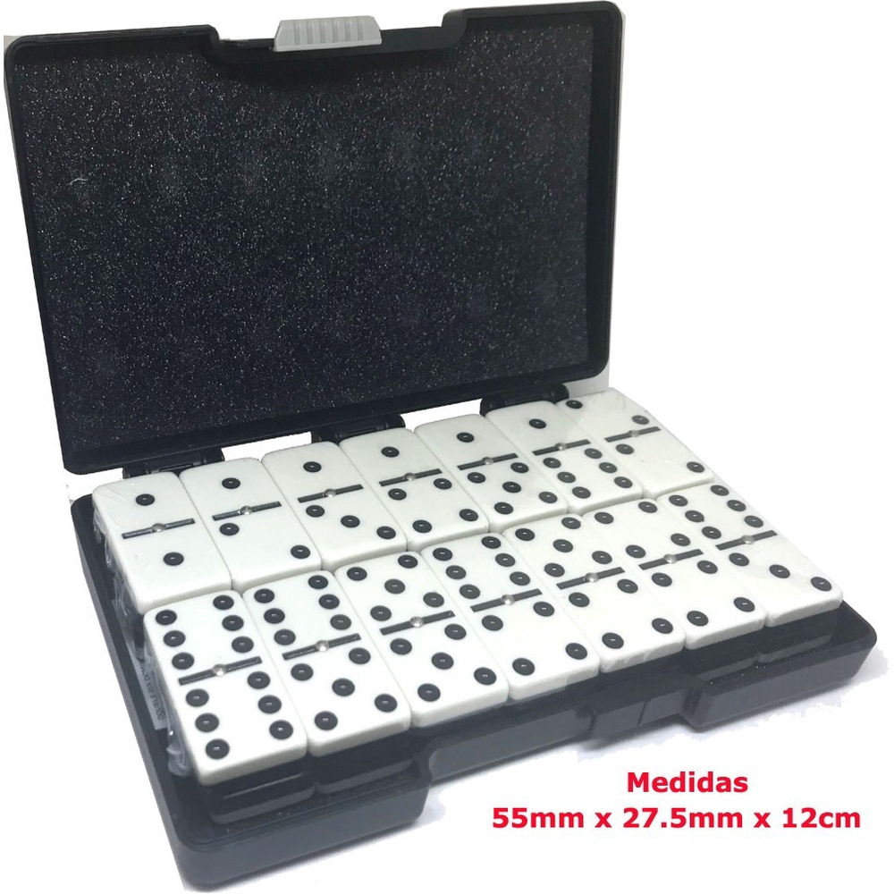 6644 JOGO DE DOMINÓ PROFISSIONAL NA MALETA Branco e Preto 28 PEÇAS 12mm