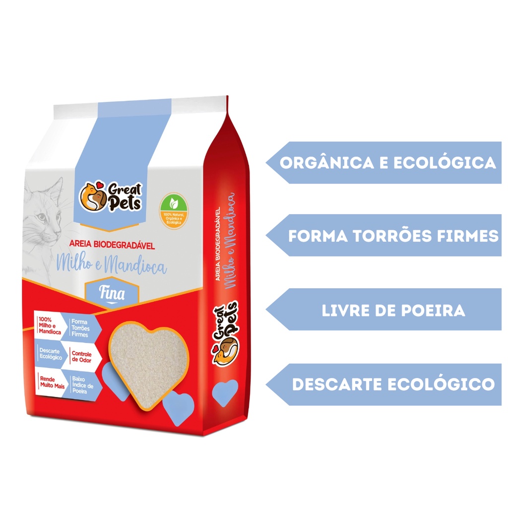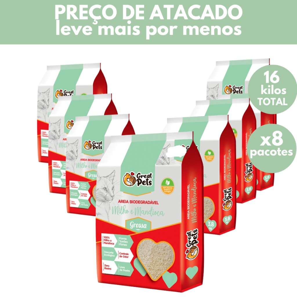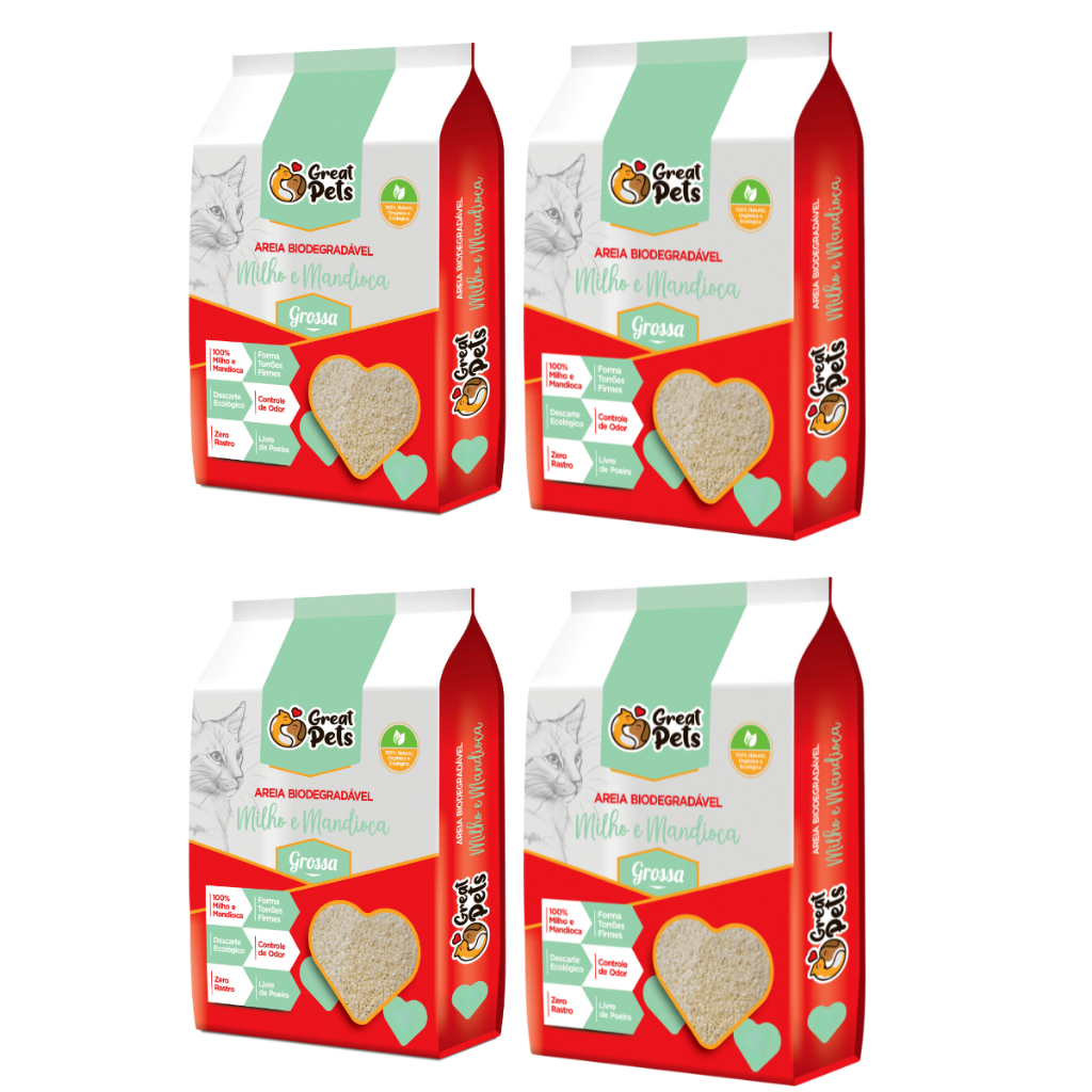 Kit Atacado Areia Higiênica Milho e Mandioca Biodegradável Para Gatos Great Pets