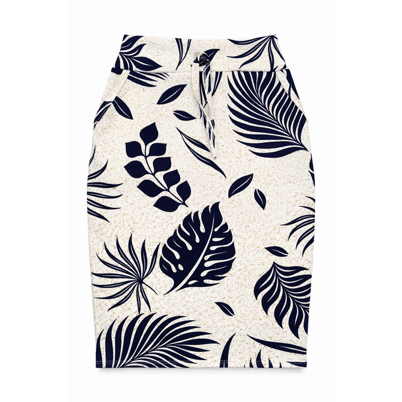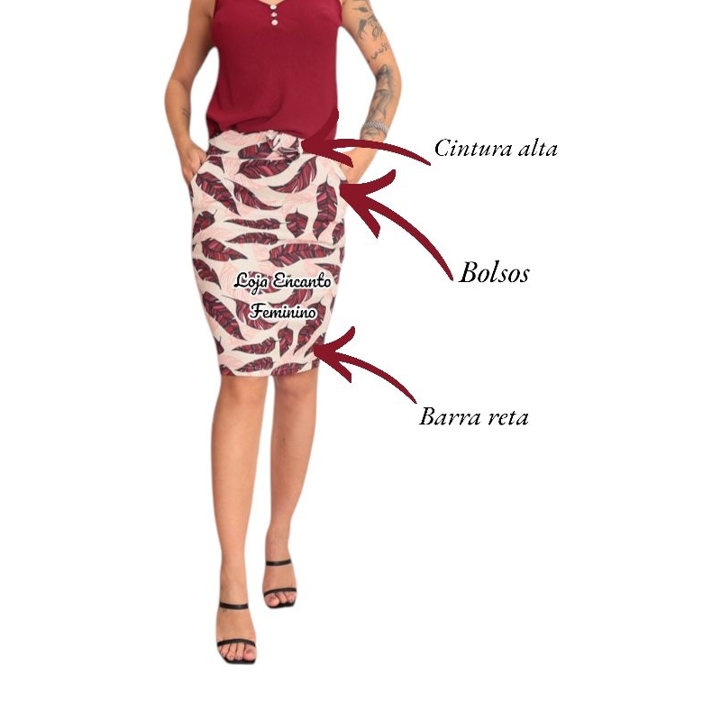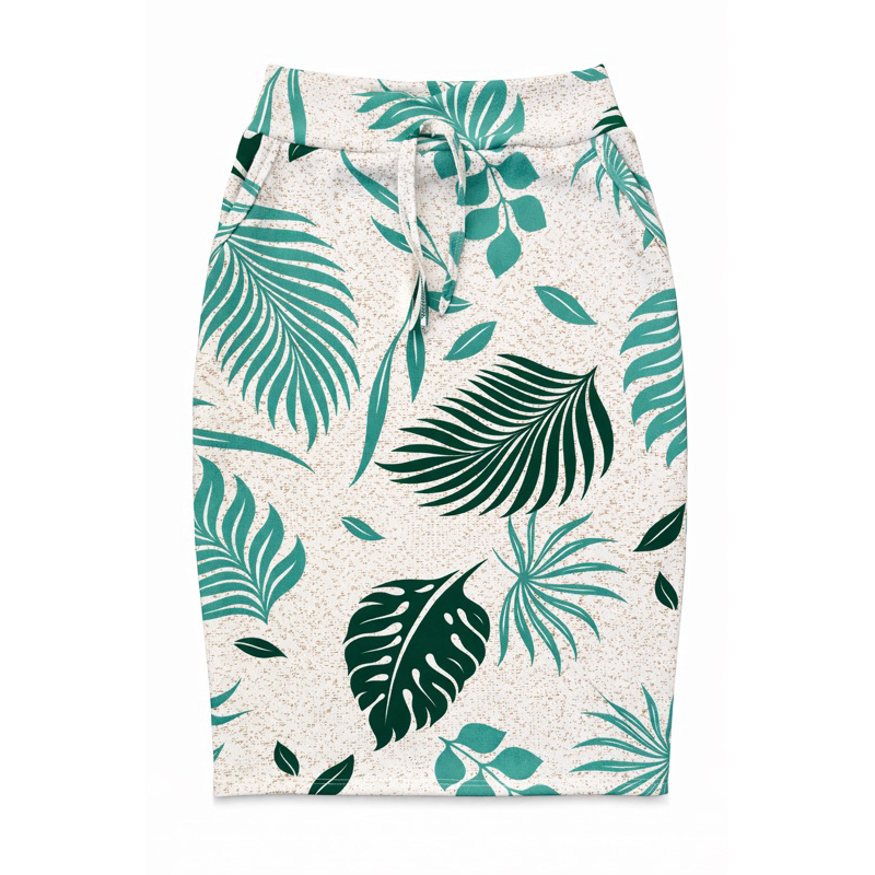 saia lapis Tam. M ao G1 cintura alta estampada Simétrica folhas florida lindas moda evangélica com bolsos funcional