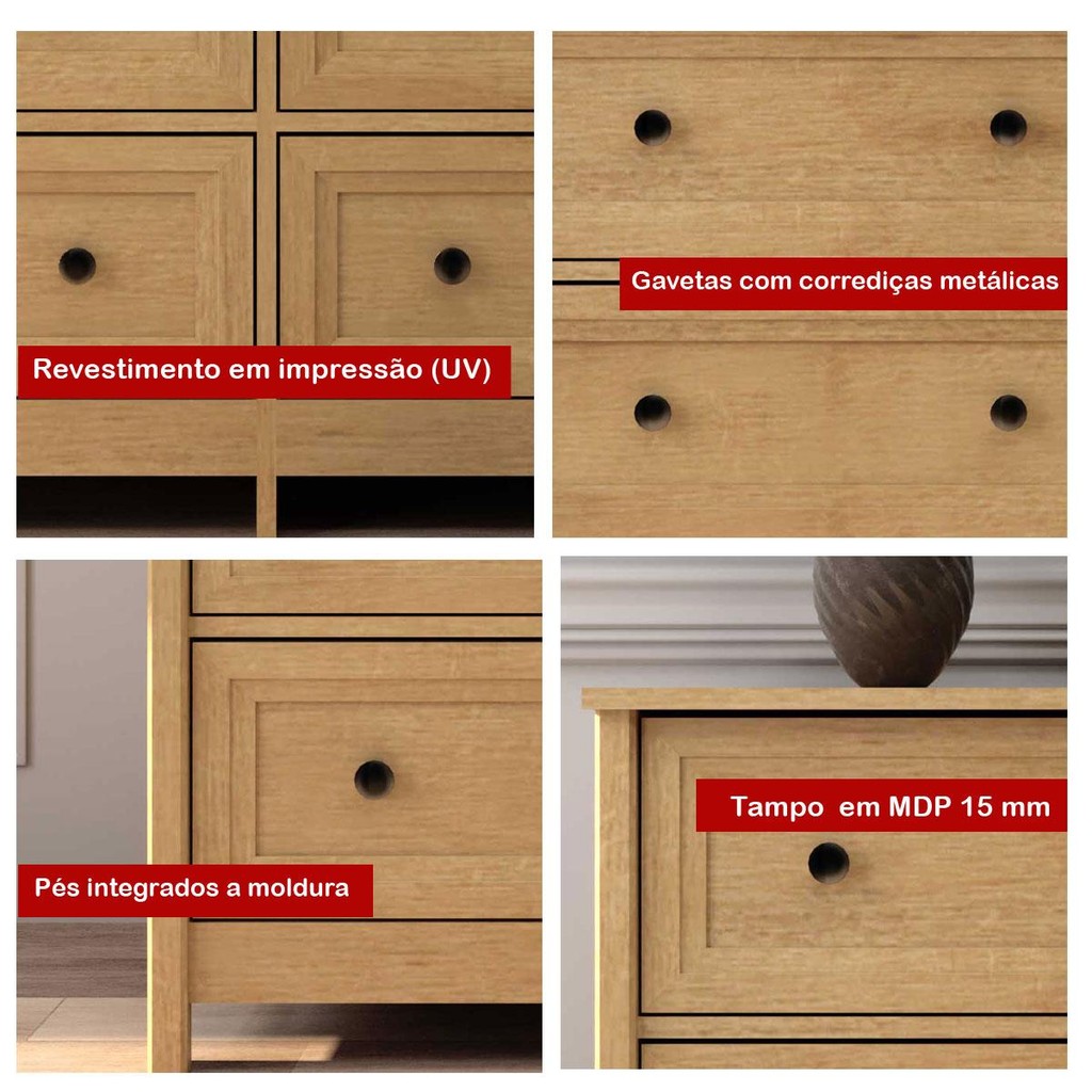 Cômoda 6 Gavetas Ditália DM-217 Carvalho