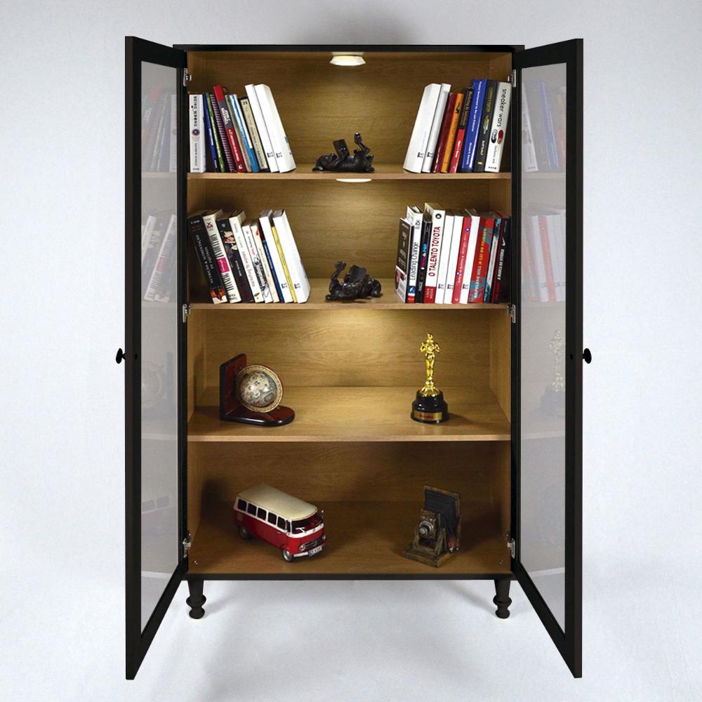 Armário Multiuso 2 portas de vidro Ditália C/Kit Luz E-957