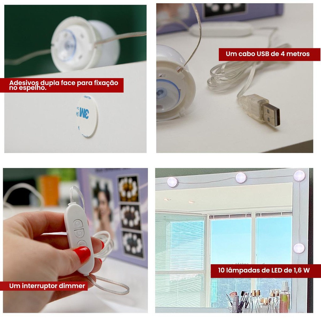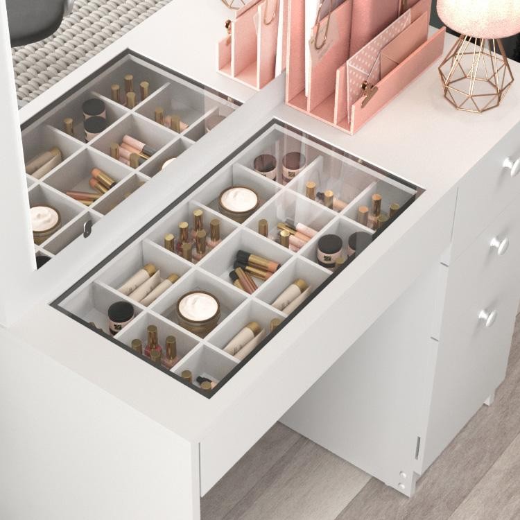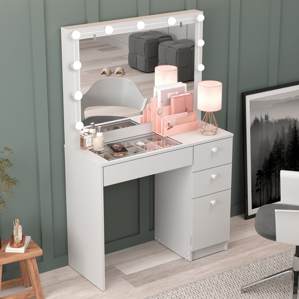 Penteadeira Ditália c/ tampo de vidro + kit luz PE-120