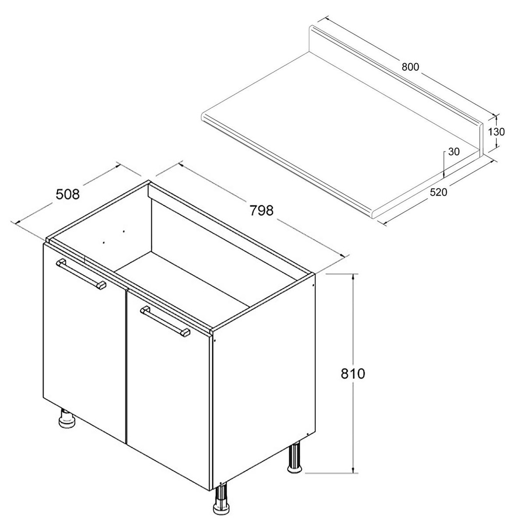 Balcão Cozinha Ditália Aspen 2Pt c/tampo CD-102 Cv/Branco