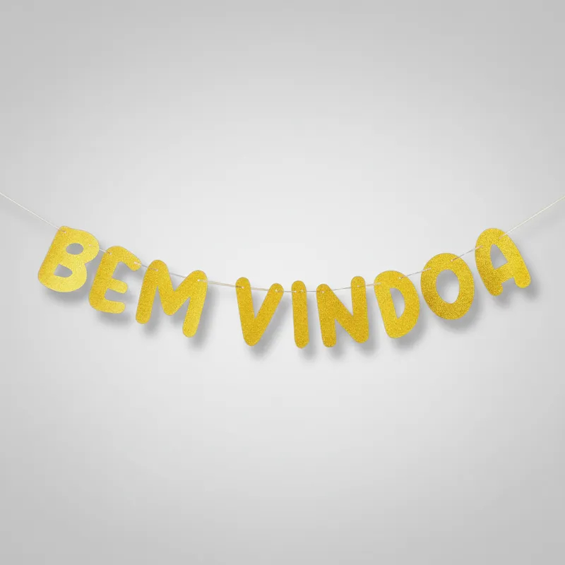 Faixa Decorativa Especial - Bem-vindo - Bem-vinda - Glitter Dourada
