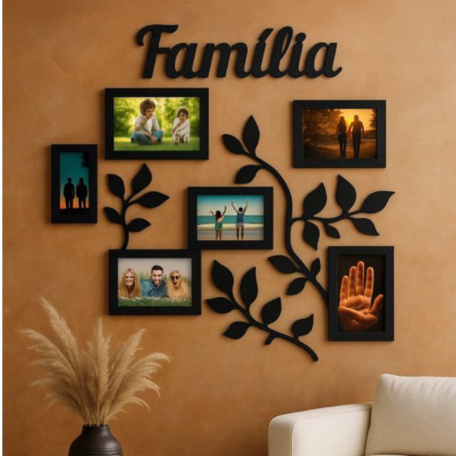 Quadro Família em MDF 50x45cm com Molduras – Painel Decorativo para Fotos e Memórias
