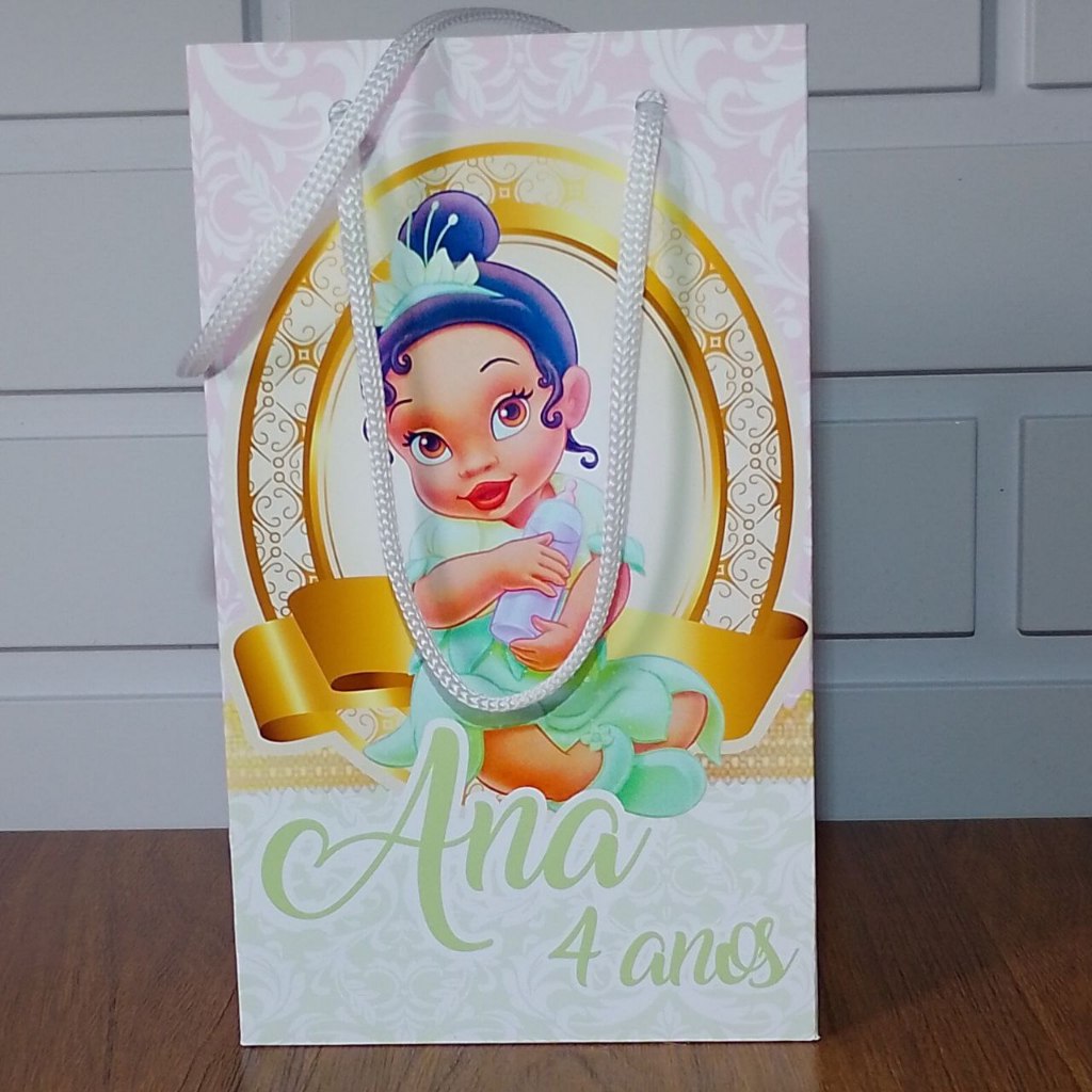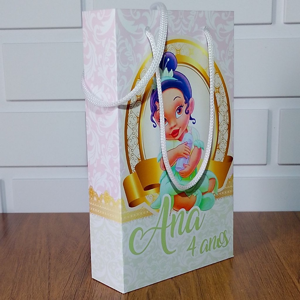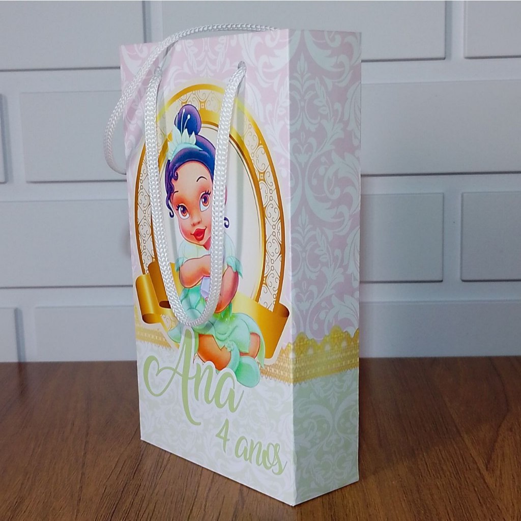 Sacolinha Personalizada Princesa Tiana Baby Aniversário Infantil Mimos e Lembrancinhas para Festa KIT PEGUE E MONTE