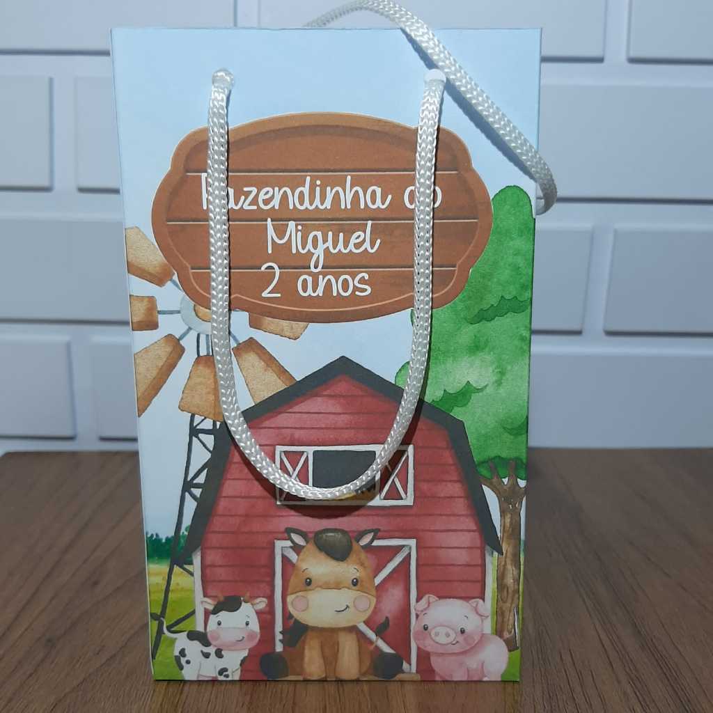 Sacolinha Personalizada Fazendinha Vermelha Aniversário Infantil Mimos e Lembrancinhas para Festa KIT PEGUE E MONTE