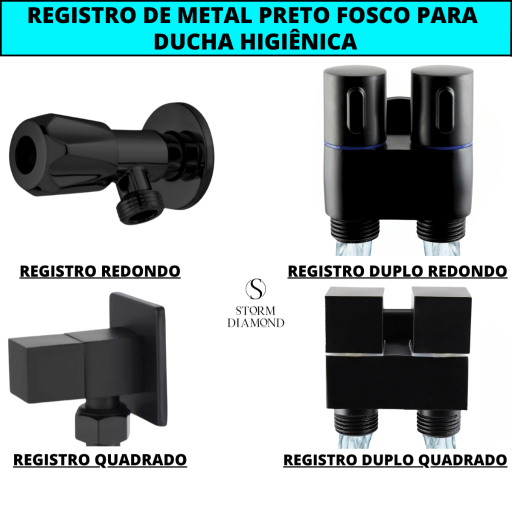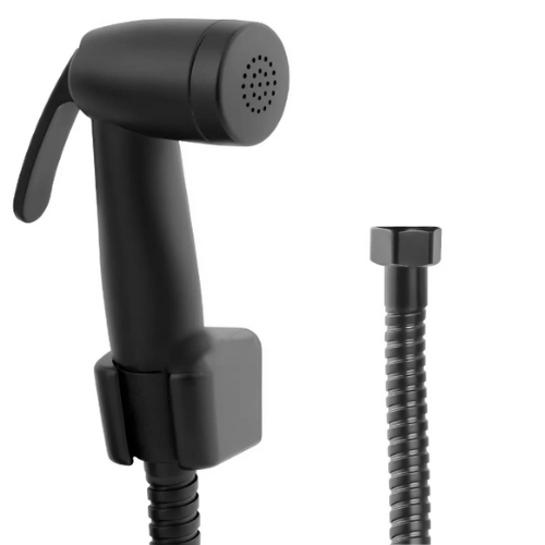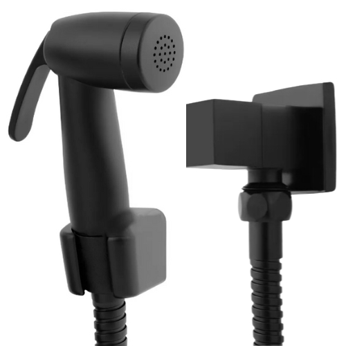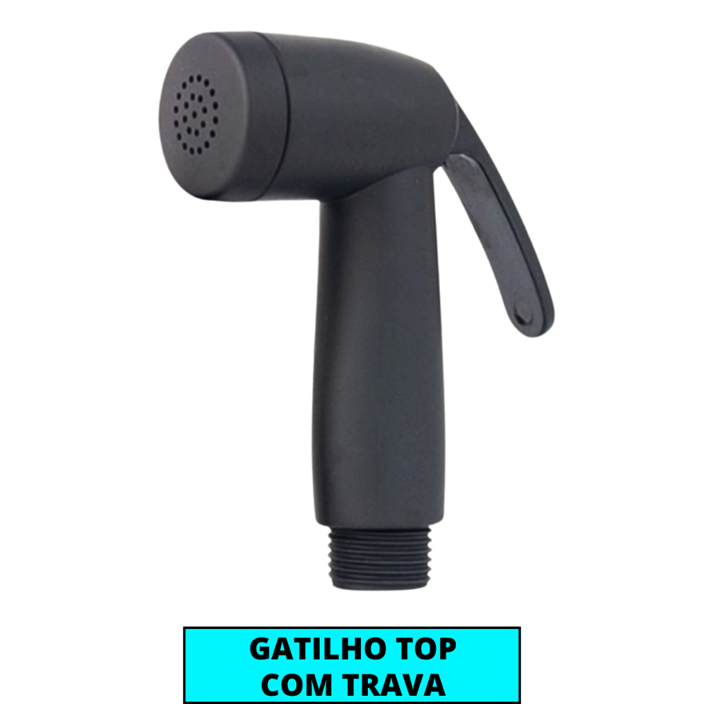 Ducha Higiênica Preta Completa Com Registro Metal Quadrado + Gatilho Top + Engate Flexível Aço Inox