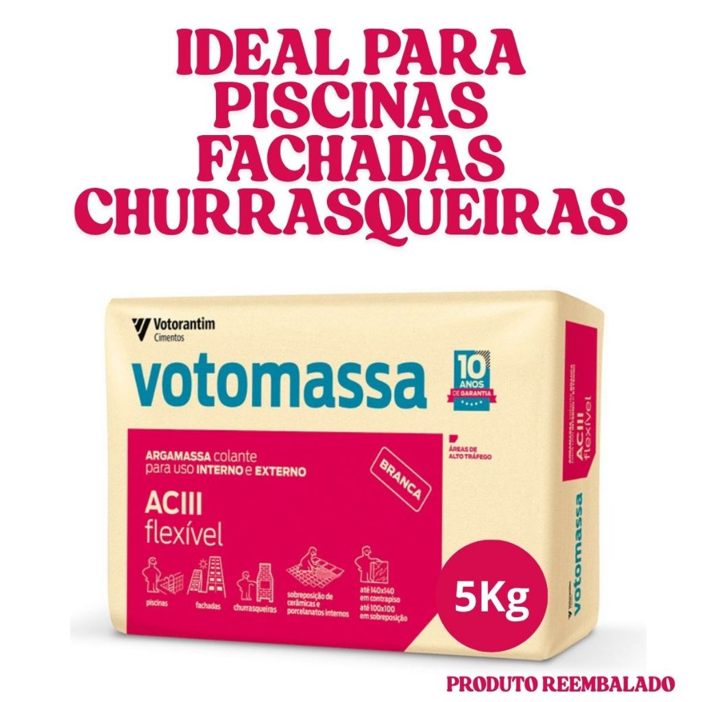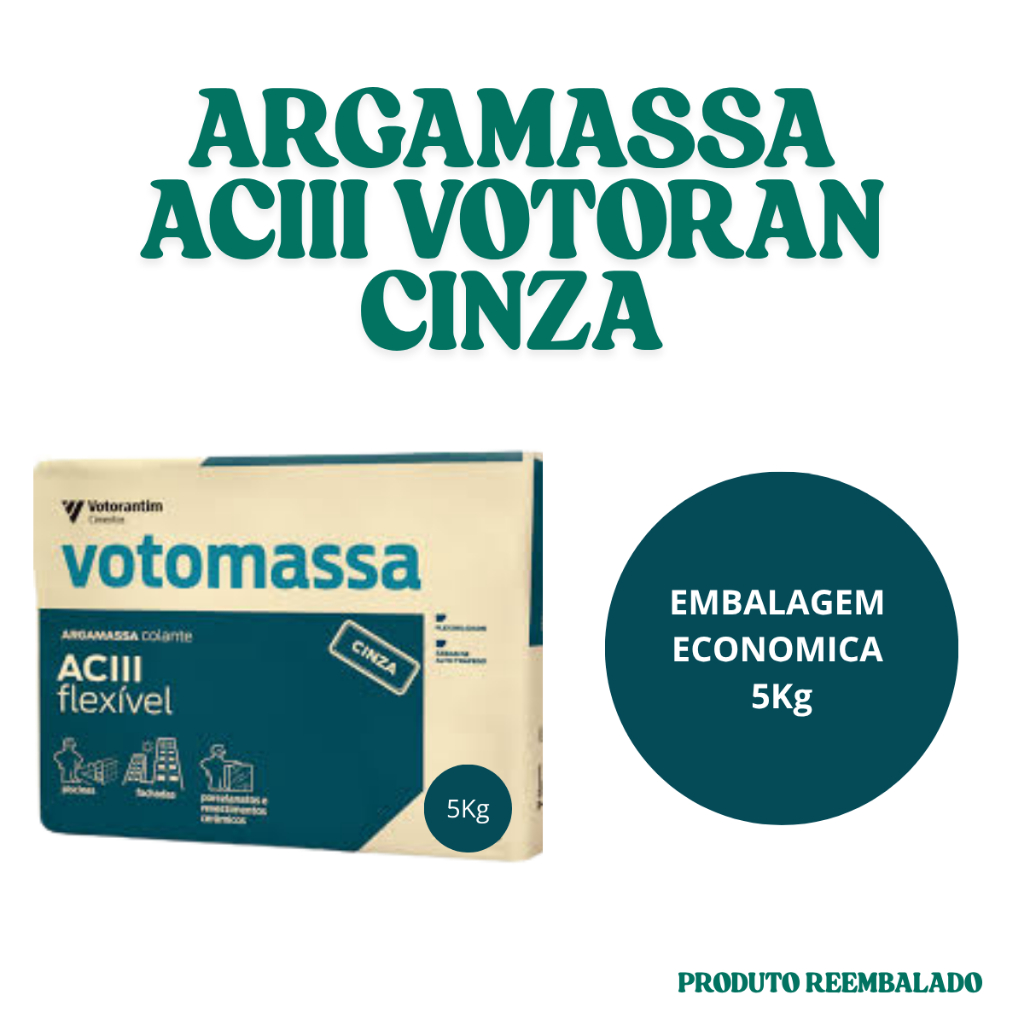 Argamassa ACIII Votomassa Cimentcola Flexível AC3 Branca - Cinza Votorantim 5kg Embalagem Econômica
