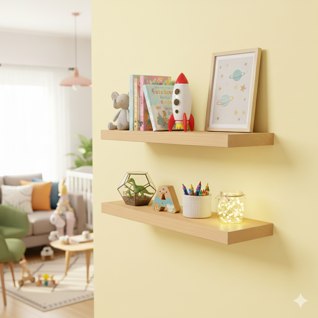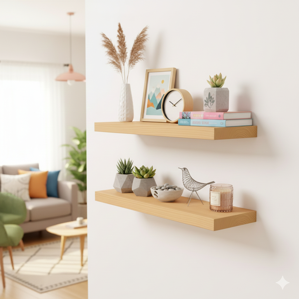 Kit 2 Prateleiras Suporte Invisível Madeira - Prateleira em Madeira