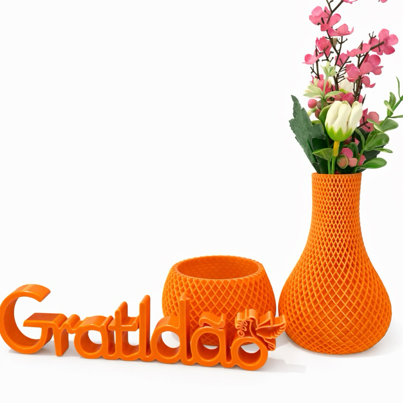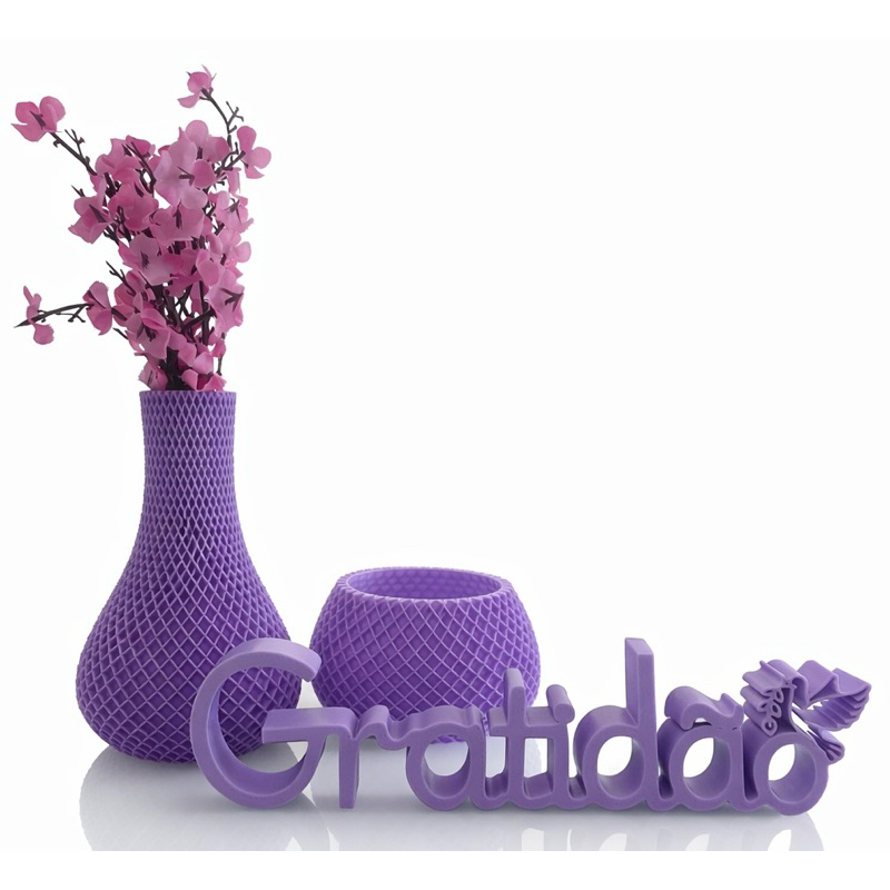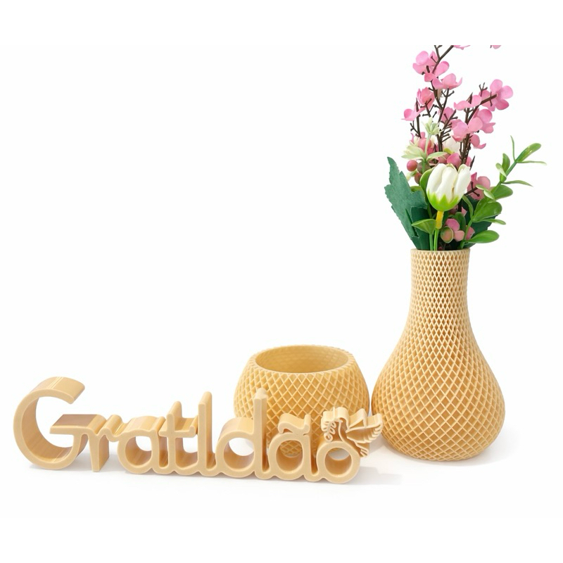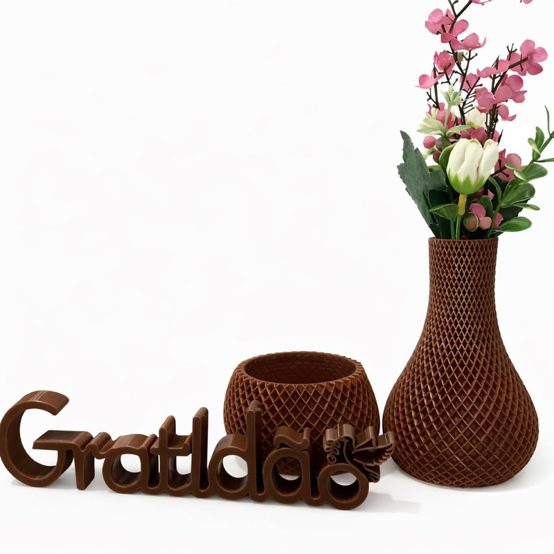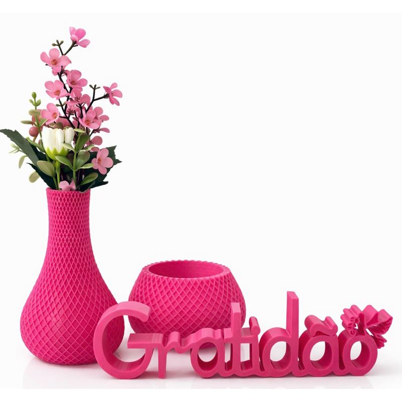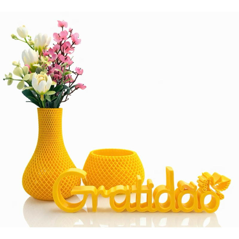 Kit Gratidão decoração minimalista – vaso + porta-velas + letreiro.
