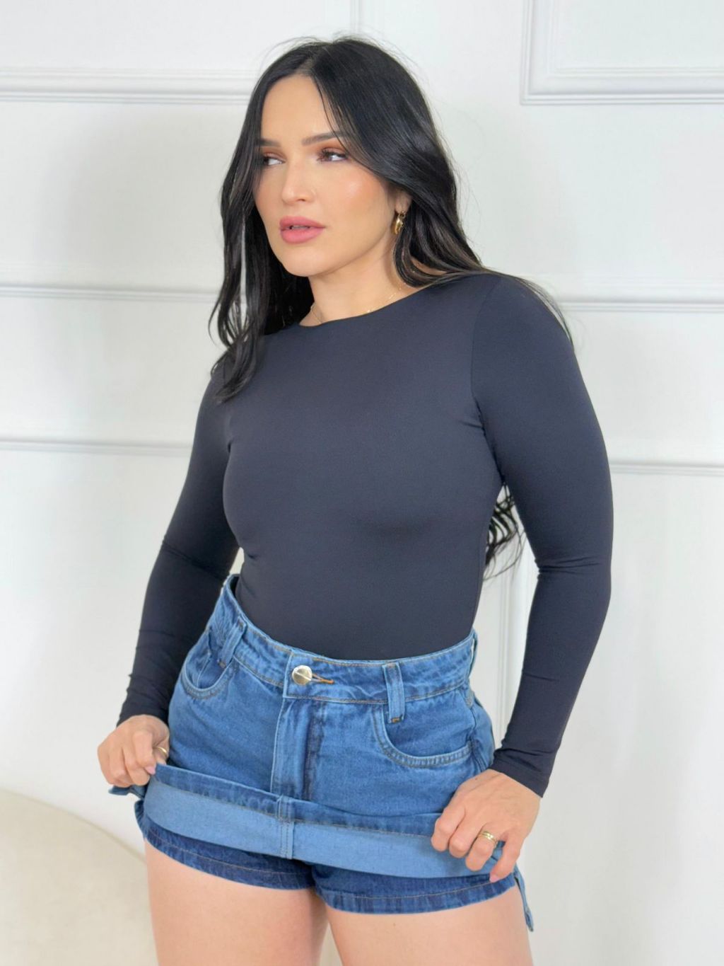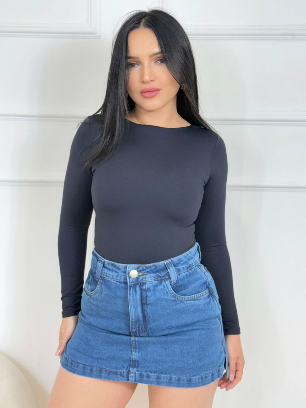 Short Saia Jeans Feminino Cintura Alta — Modelo Curto, Moda Casual