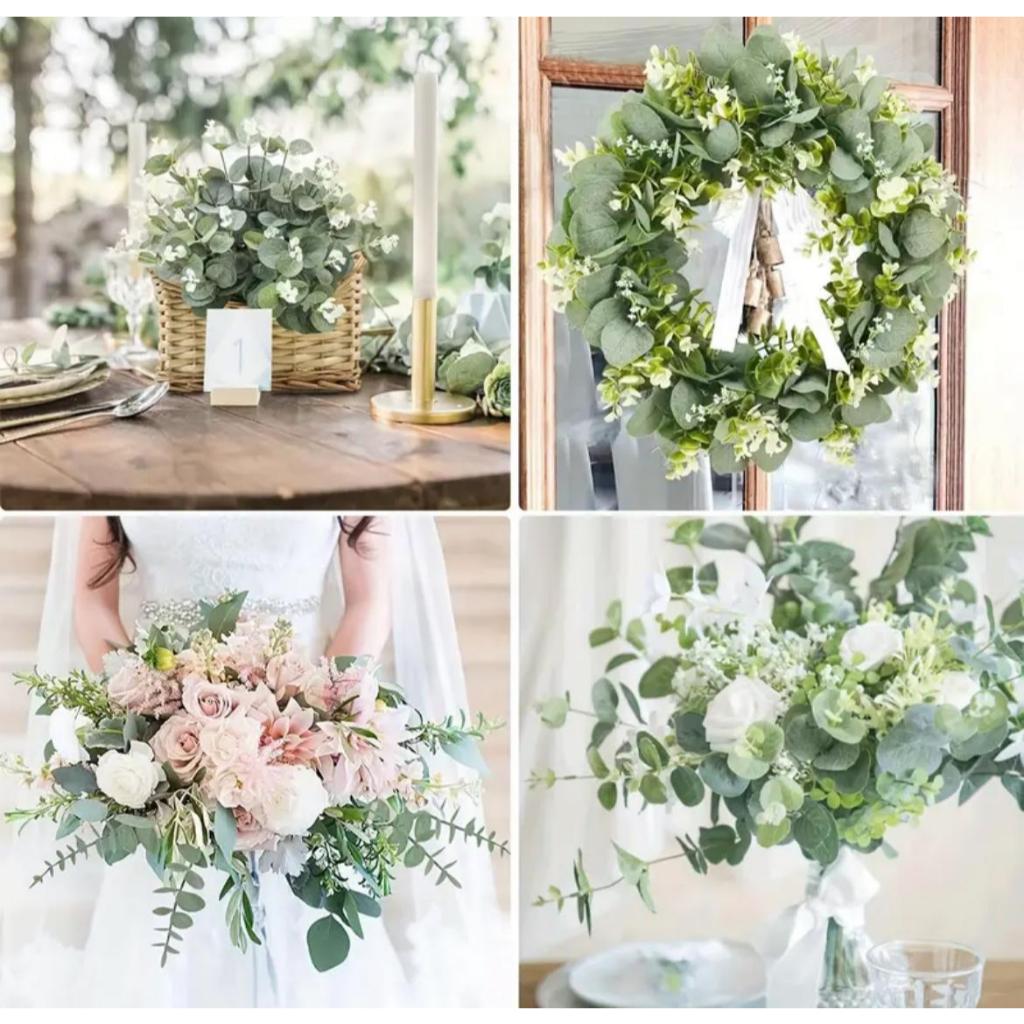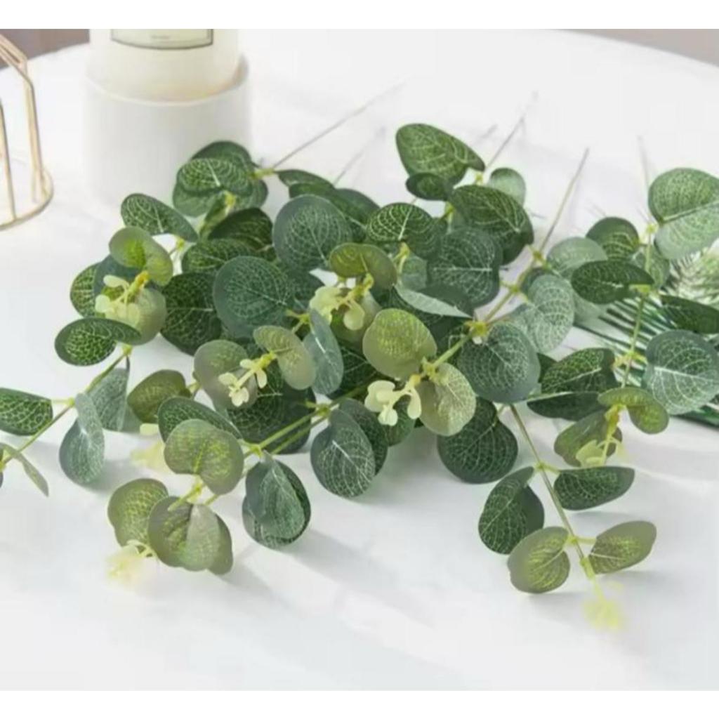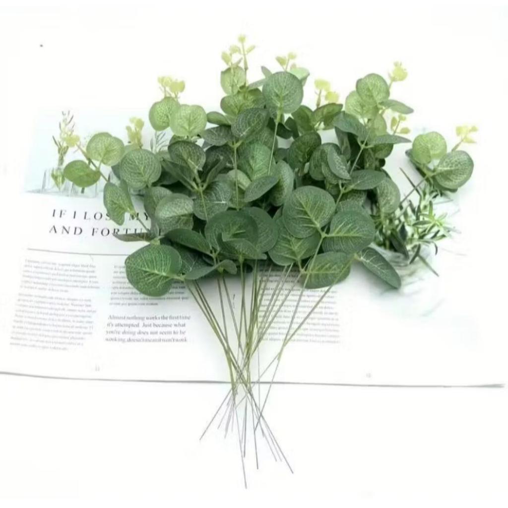 Kit 20 Galhos De Eucalipto 25cm Artificial Decoração Realista Arranjo Toque Real