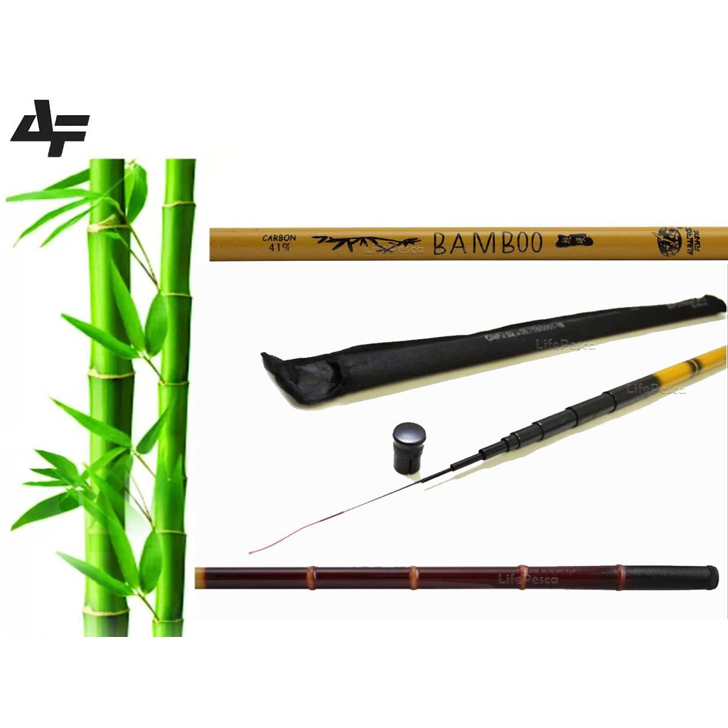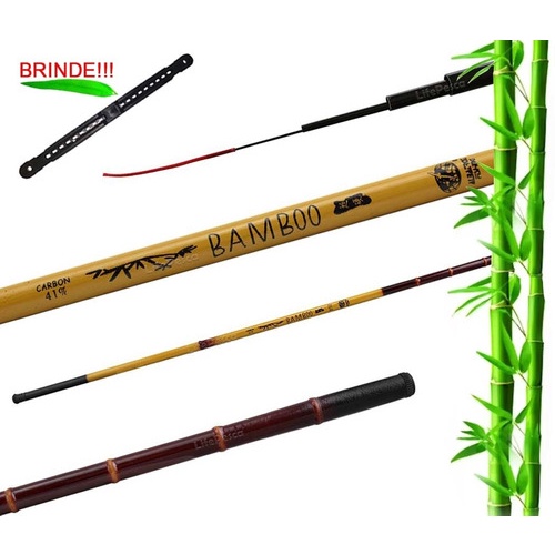 Vara Carbono telescopica Bamboo albatroz fishing + Enrolador polinha 19cm Brinde vara em diversas medidas