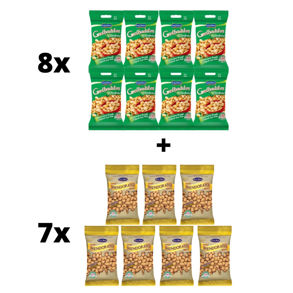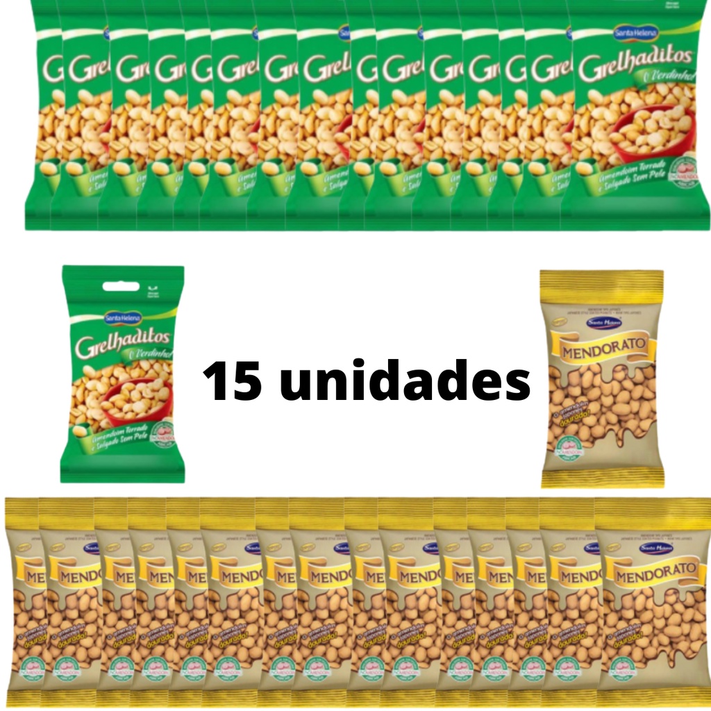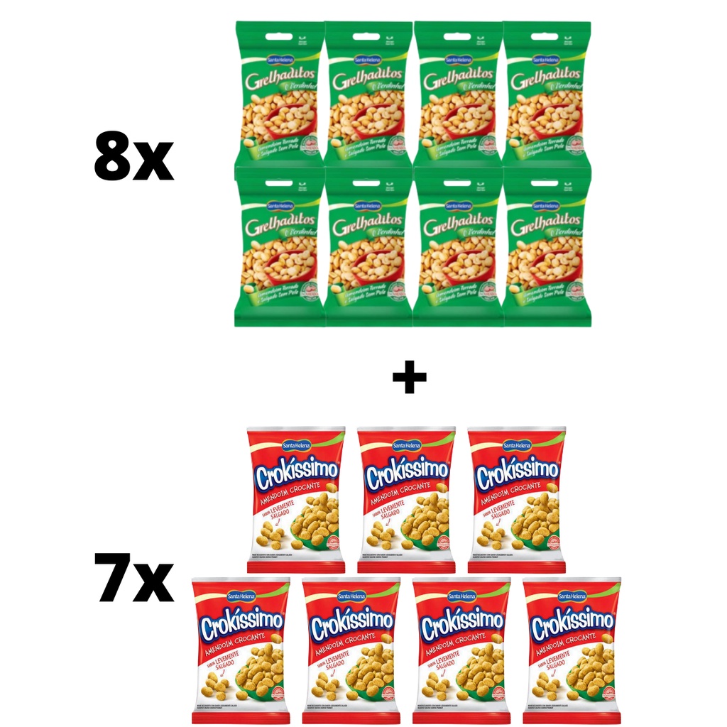15 Pacotes Amendoim Japonês Mendorato /Grelhaditos ou Crokíssimo Santa Helena salgado (PEQUENO)