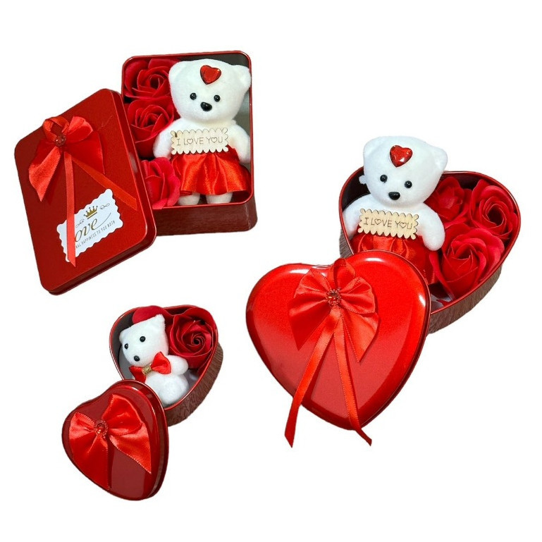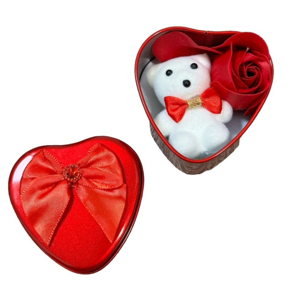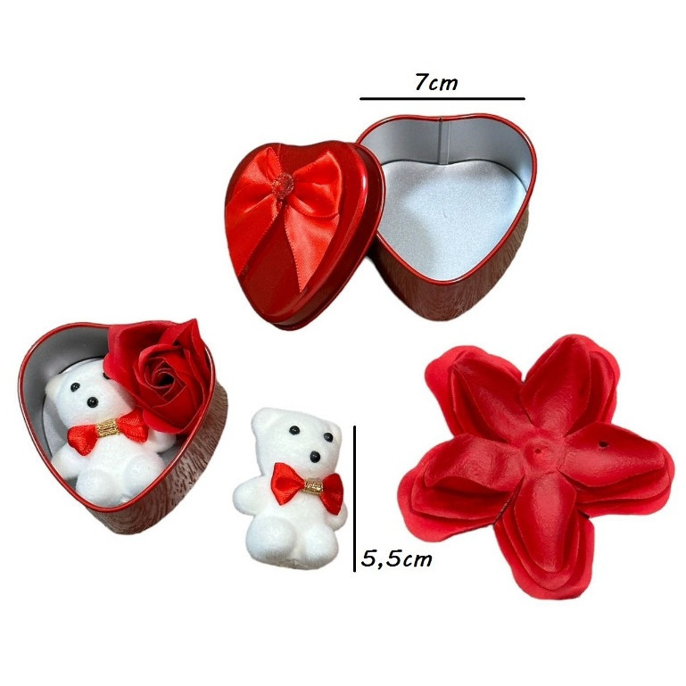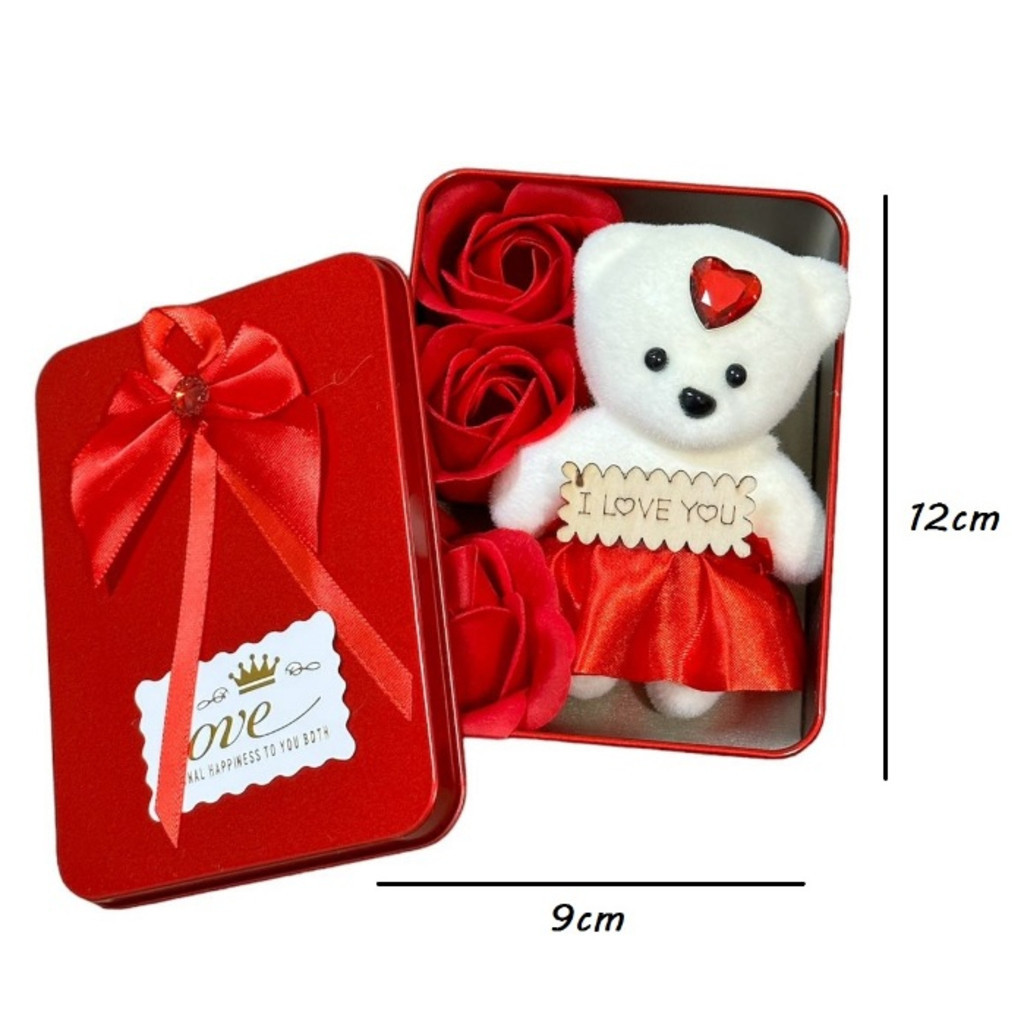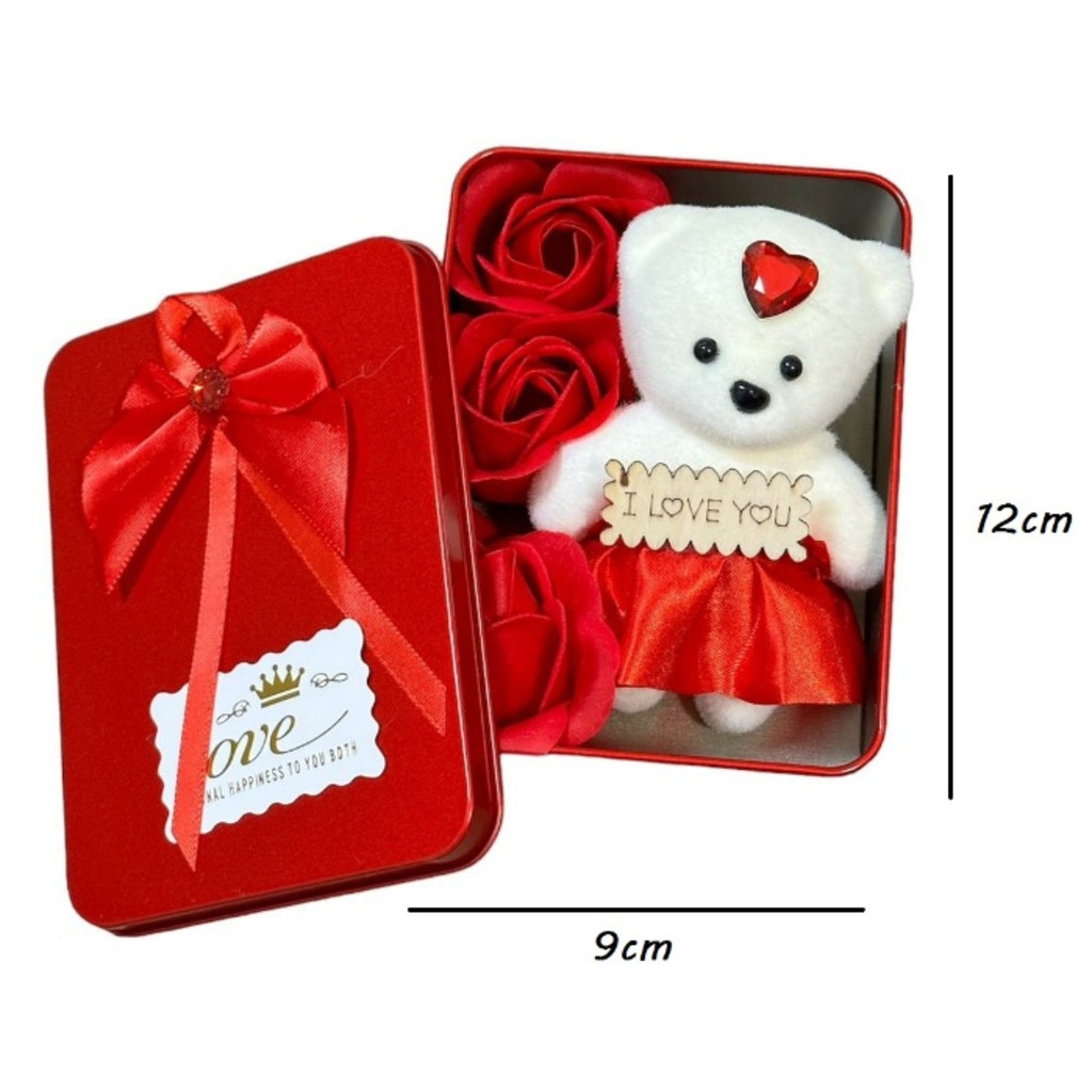 Caixa De Presente Em Metal Com Ursinho E Flores