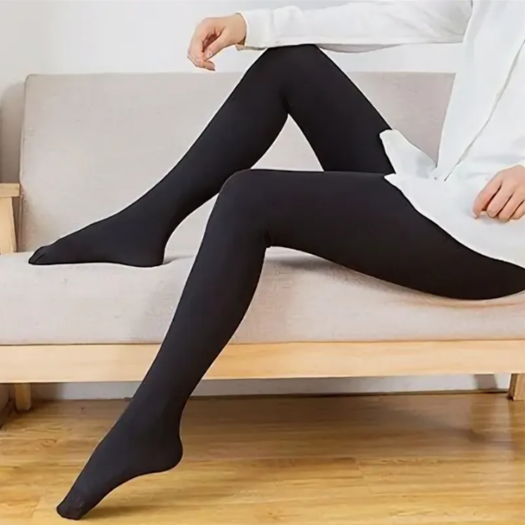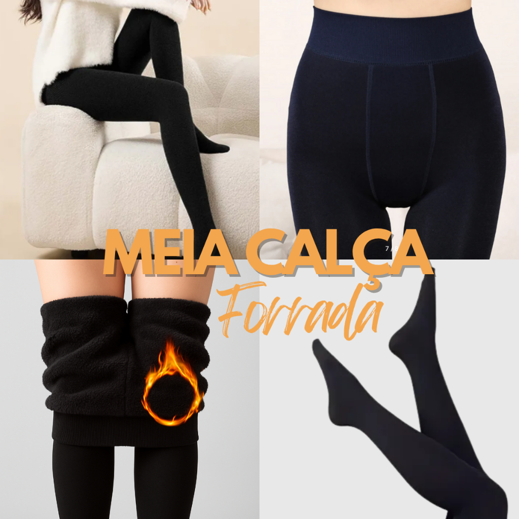 Meia Calça Preta Forrada Térmica De Lã Feminina Para Inverno