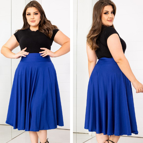 Saia Midi P ao Plus Size Várias Cores Lisas Moda Feminina Modesta