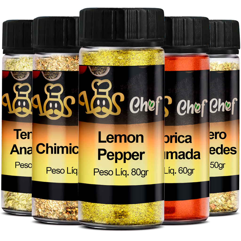 Kit 10, 5 Temperos Pote Até 130gr Chimichurri Lemon Pepper Cúrcuma Baiano Páprica Defumada LosChef