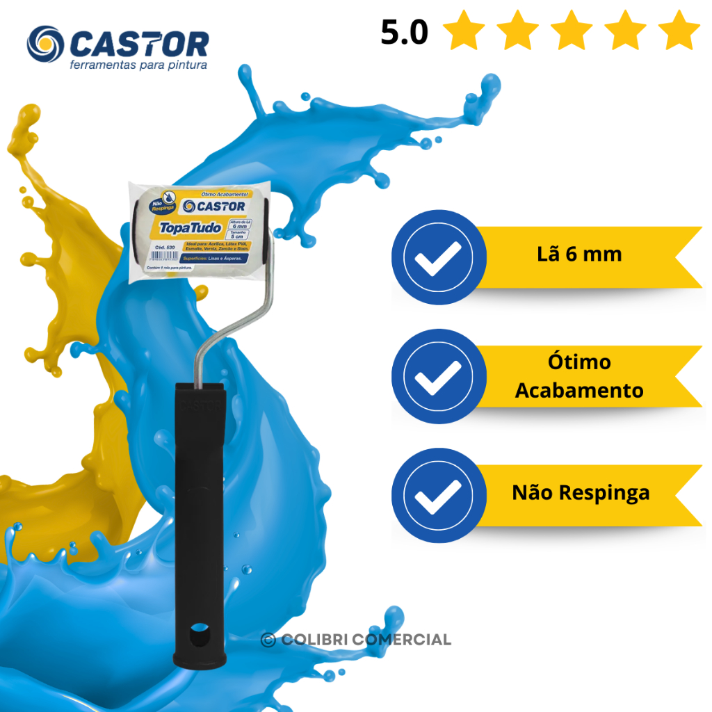 Rolo para pintura Lã Topa Tudo 6MMx5CM c/cabo - Castor
