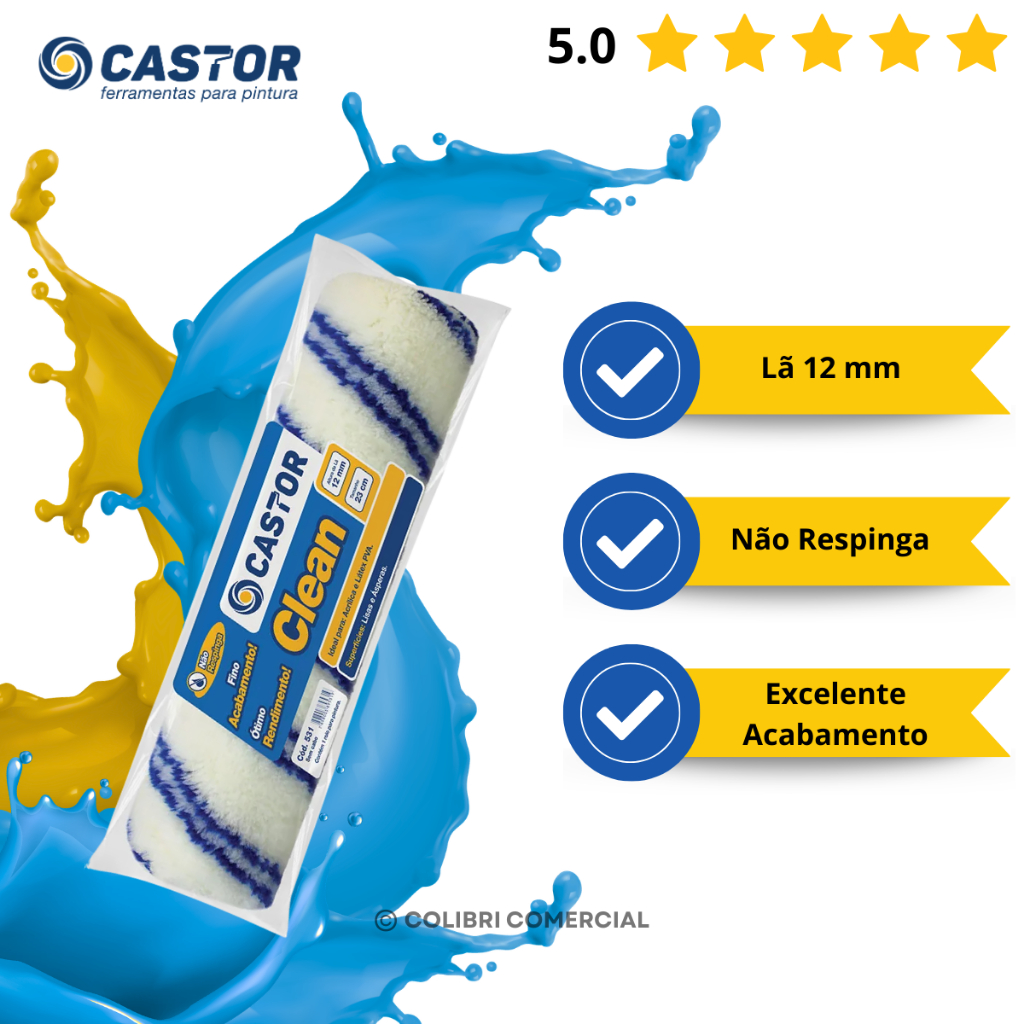 Rolo para pintura Lã Clean 12MMx23CM s/cabo - Castor