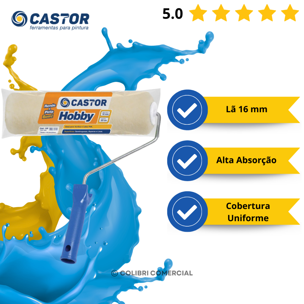 Rolo para pintura Lã Hobby 16MMx23CM c/cabo - Castor