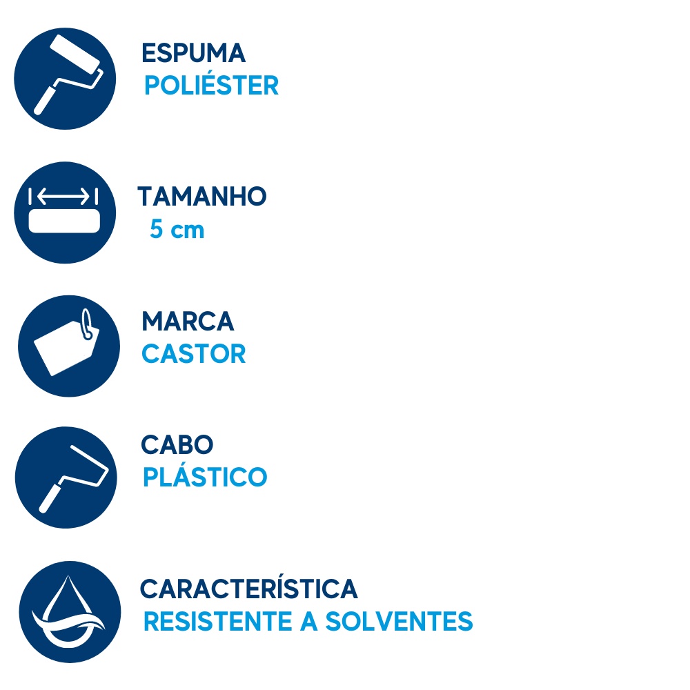 Rolo espuma poliéster 05CM c/cabo - Castor