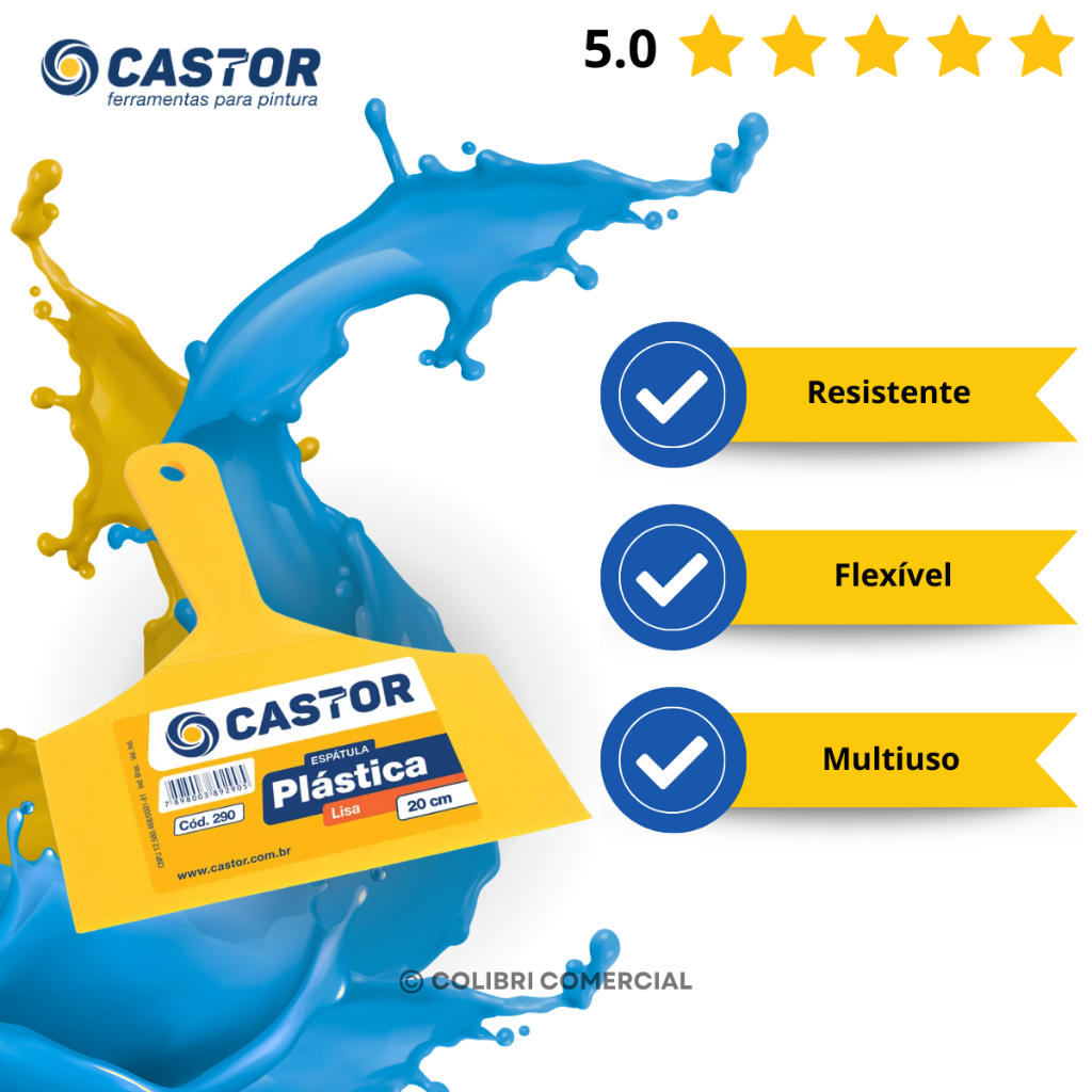 Espátula Multiuso de Plástico 20cm Lisa - Castor