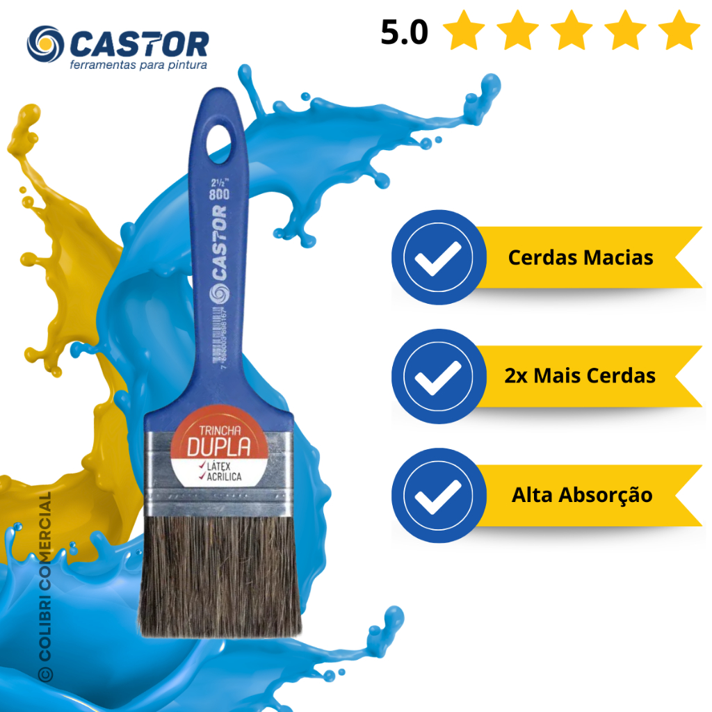 Trincha Dupla 2 1/2" Cerdas Gris Série 800 - Castor
