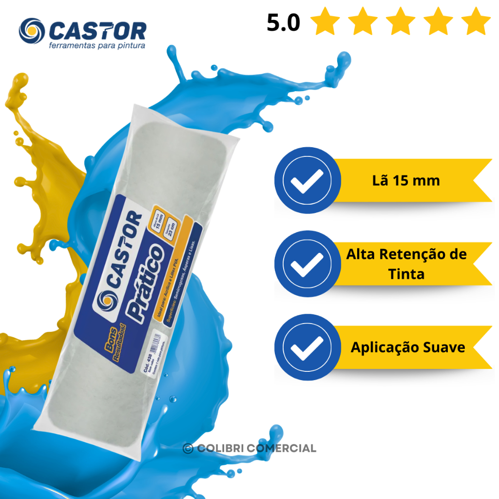 Rolo para pintura Lã Prático 15MMx23CM s/cabo - Castor
