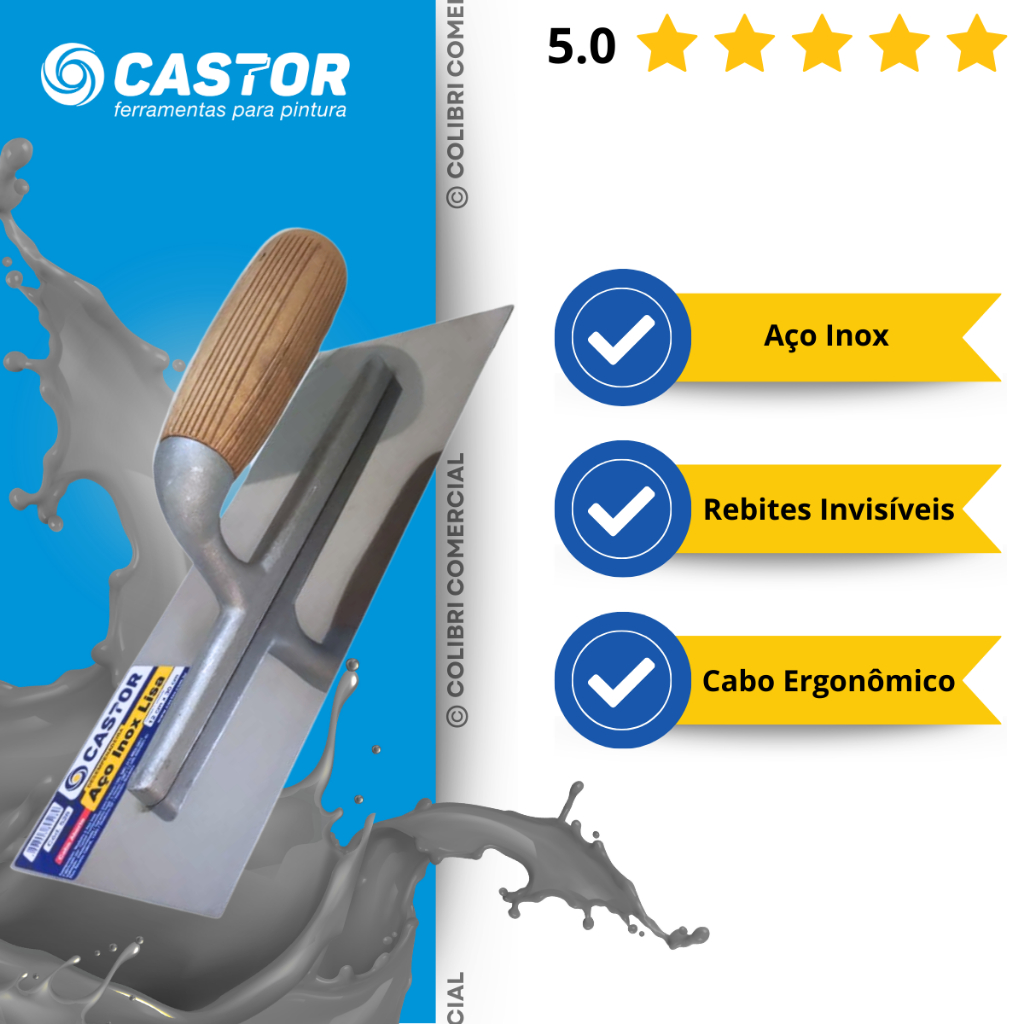 Desempenadeira aço inox 12x30cm Lisa Cabo aberto - Castor