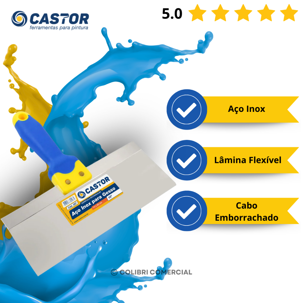 Espátula Retangular Aço Inox de 10" - Castor