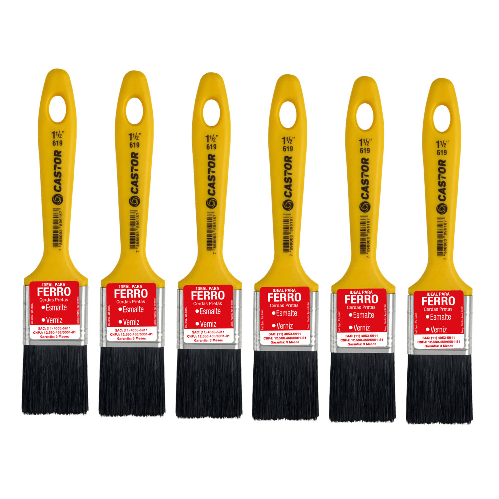 Kit 6 Trinchas 1 1/2" Cerdas Pretas Série 619 - Castor