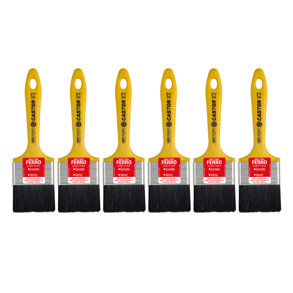 Kit 6 Trinchas 2 1/2" Cerdas Pretas Série 619 - Castor