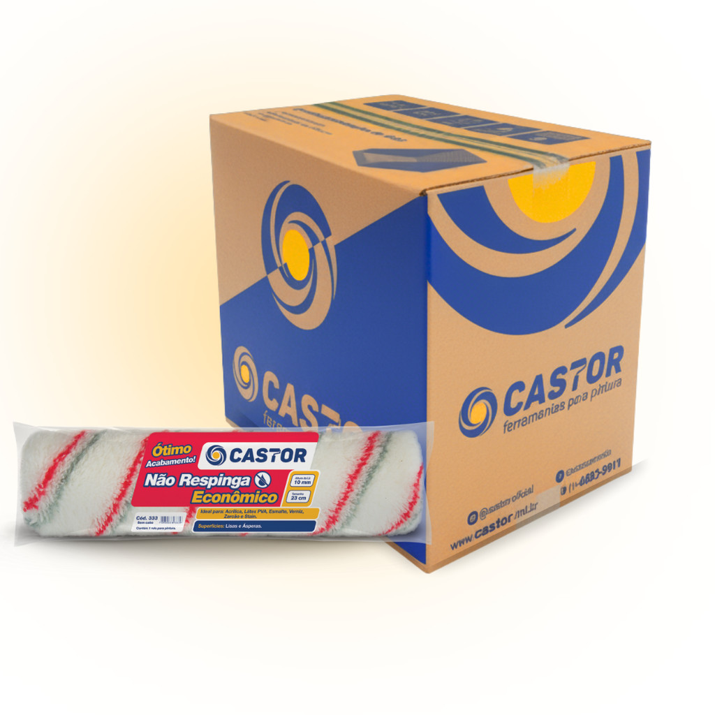 Caixa c/ 12 Rolos para Pintura Não Respinga 10MMx23cm s/cabo - Castor