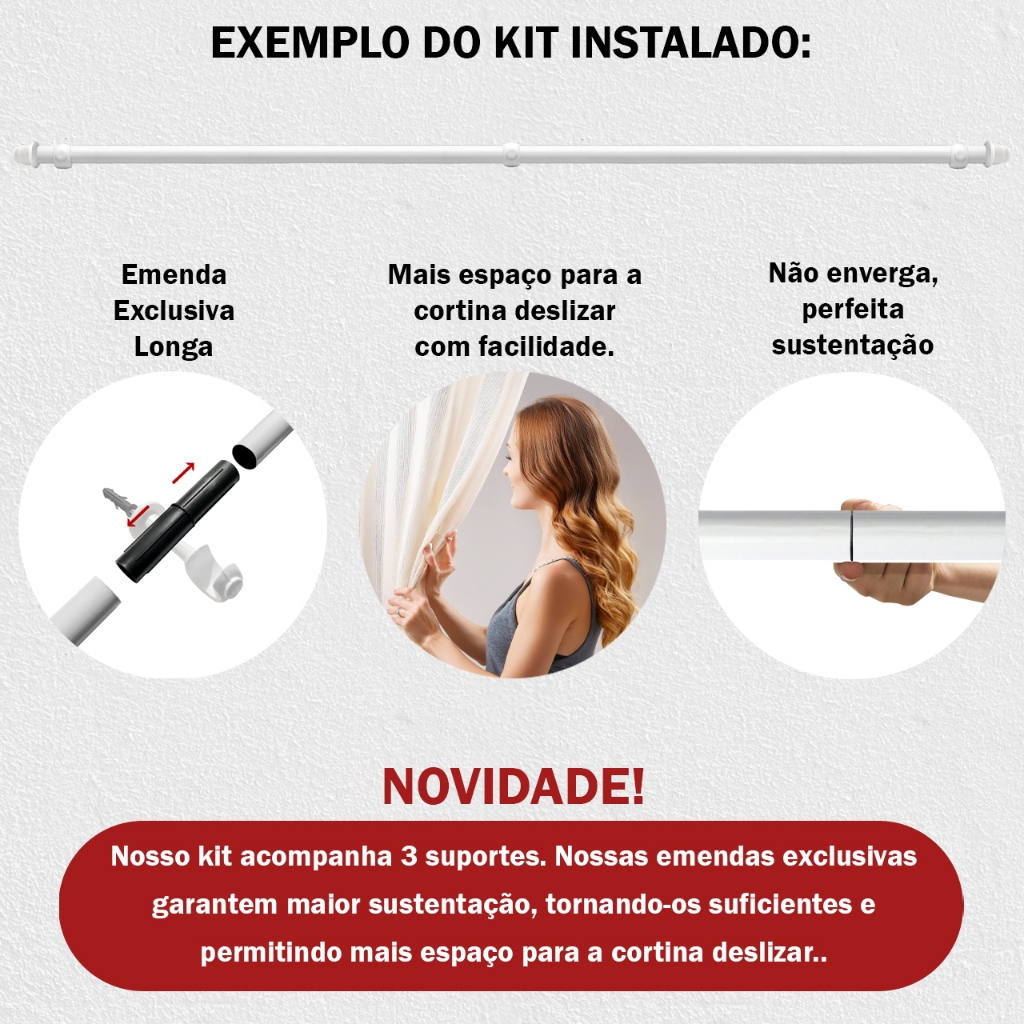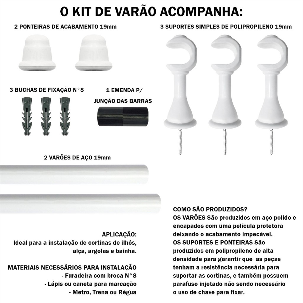 Varão Simples Cortinas 2,00 Metros 19mm Aço Várias Cores Varao Completo Bastão Cortina