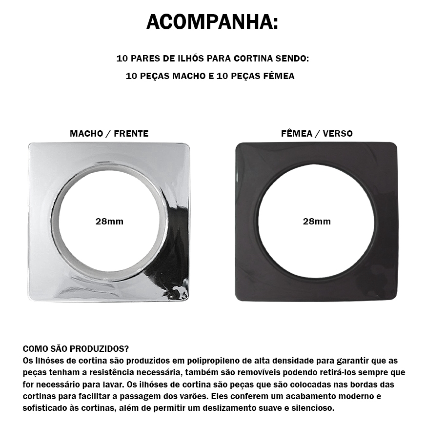 Ilhós Cromado Quadrado Pacote com 10 Unidades P/ Cortina