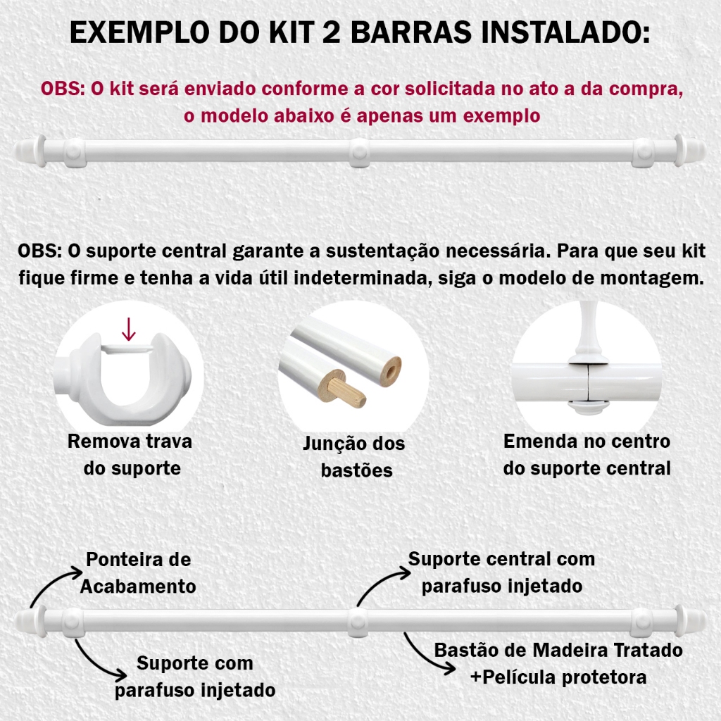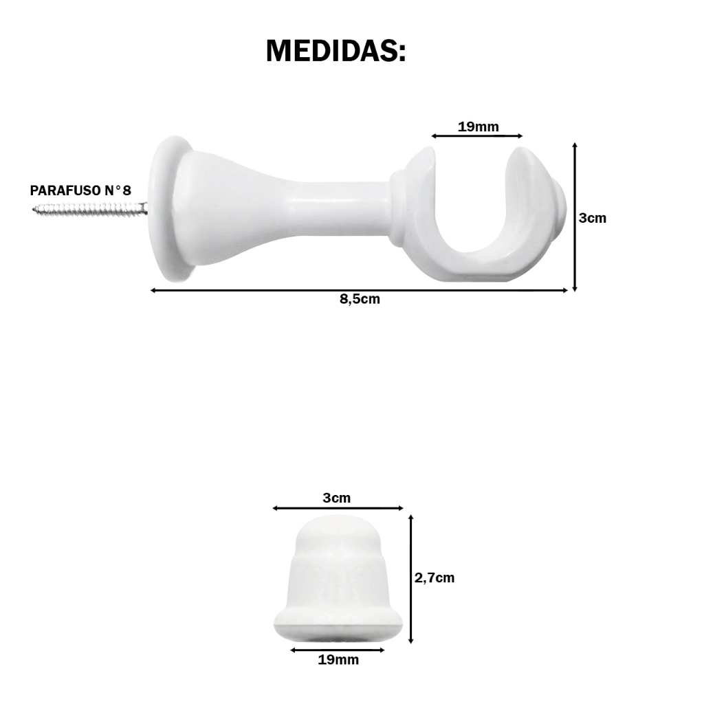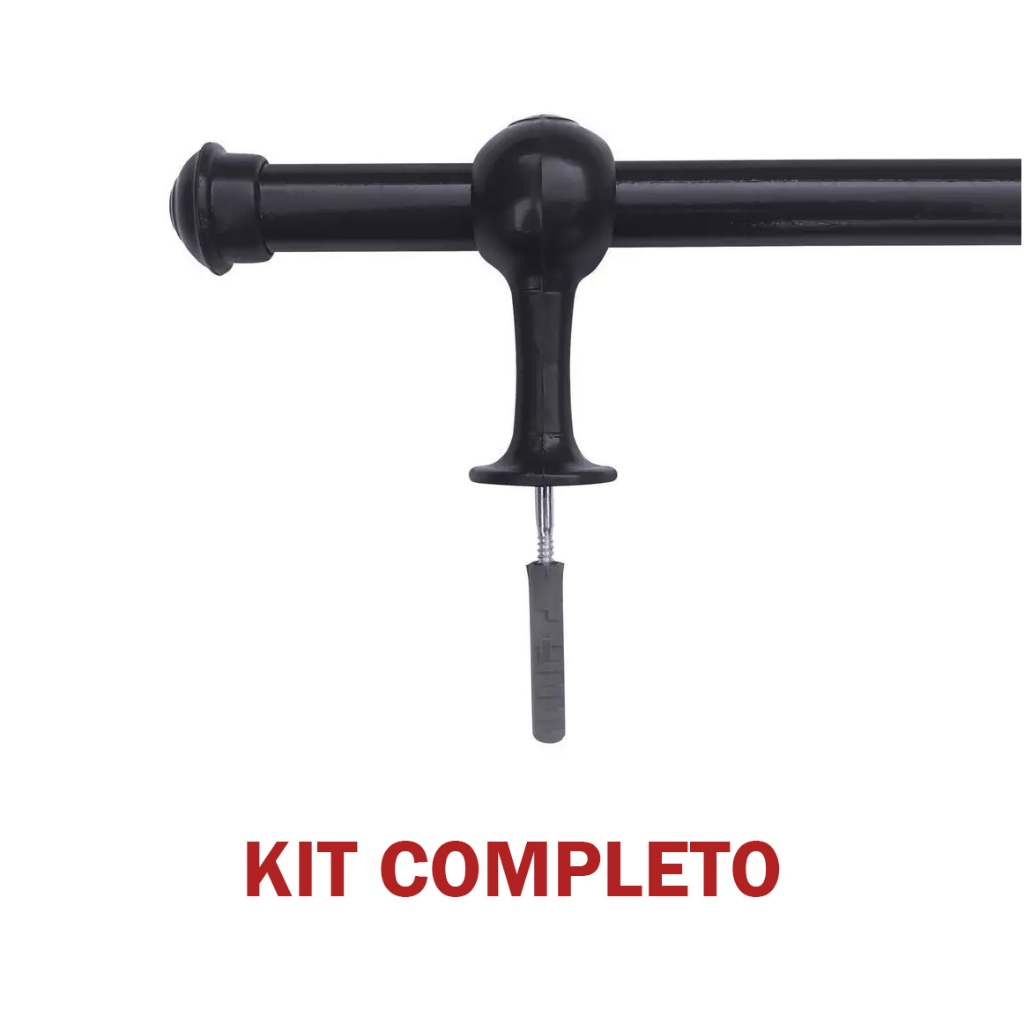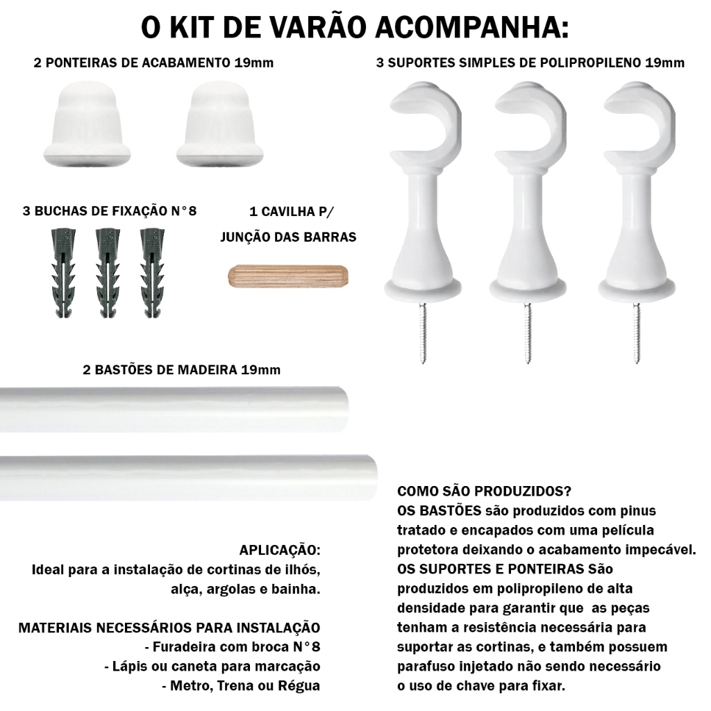 Varão de Cortina Madeira 2,00 Metros 19mm com Ponteira e Suporte Completo