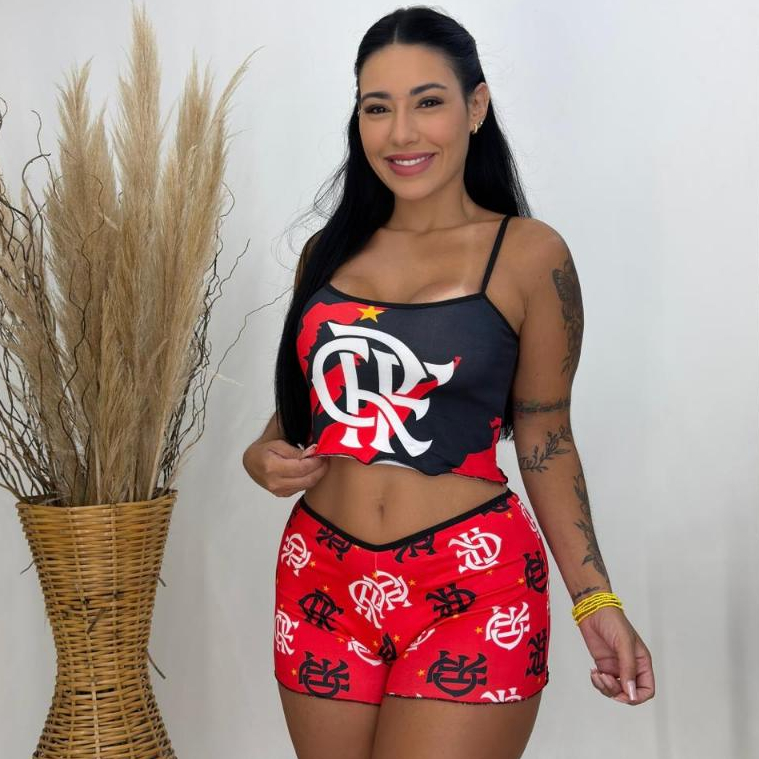Kit Pijama Time Casal ShortDoll Suede Cropped + Samba Canção Masculino Conforto Estilo Para Dormir