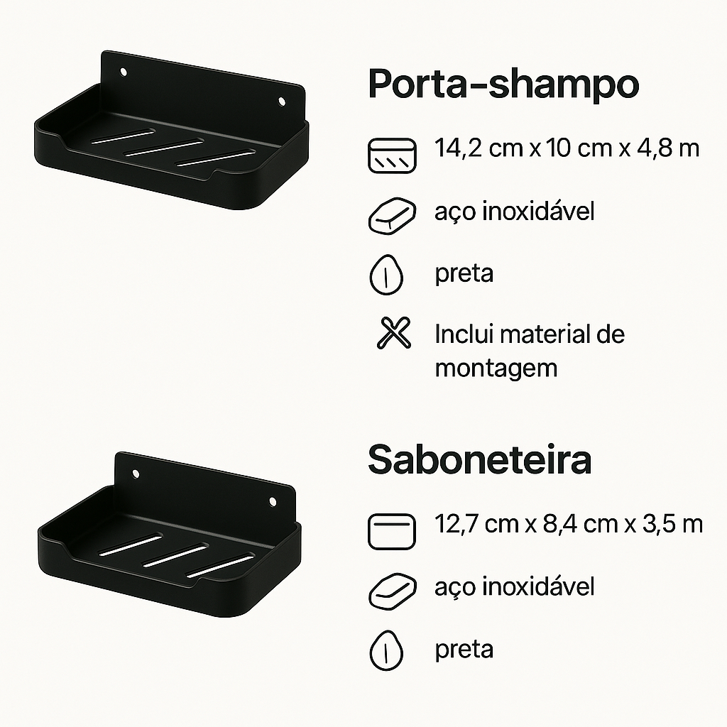 Jogo de Banheiro Saboneteira Porta Shampoo Decoração Lavabo